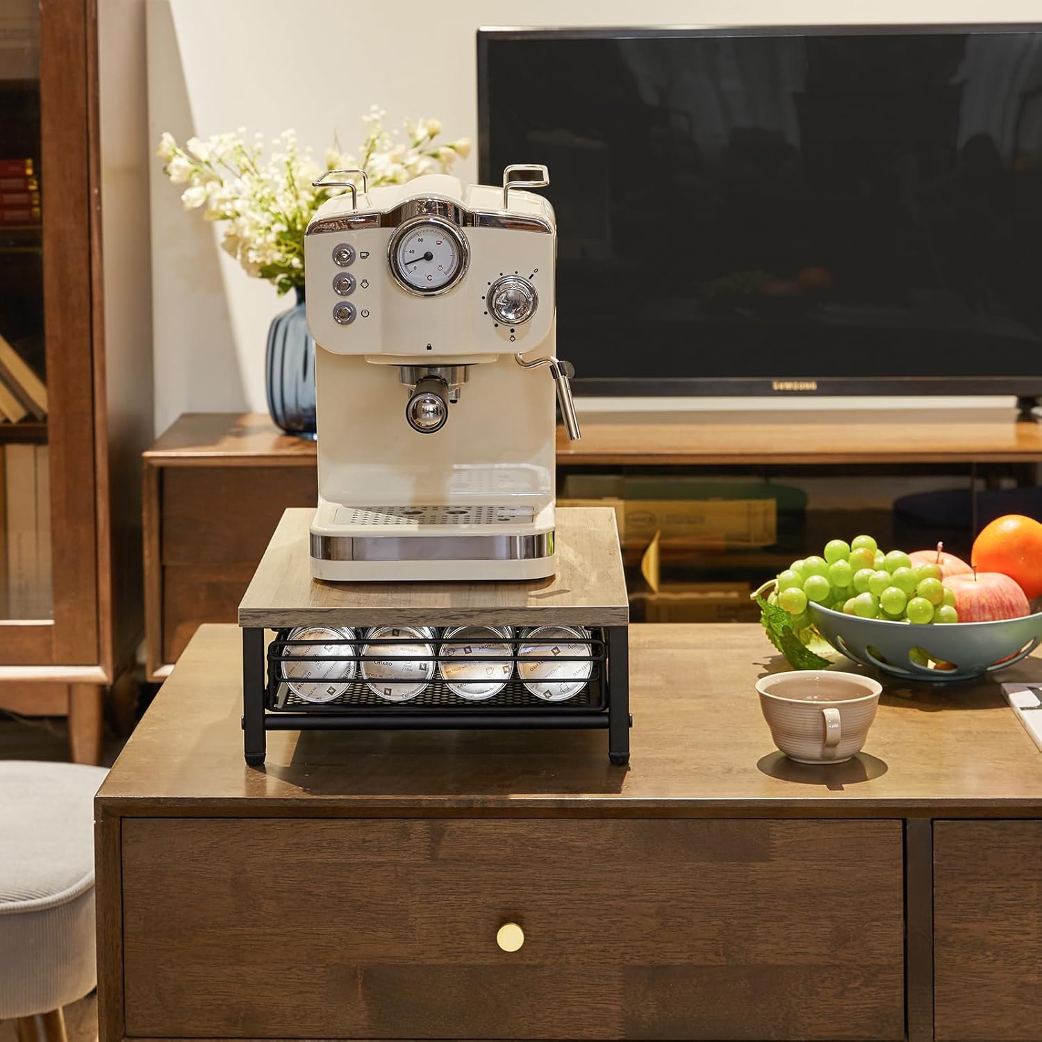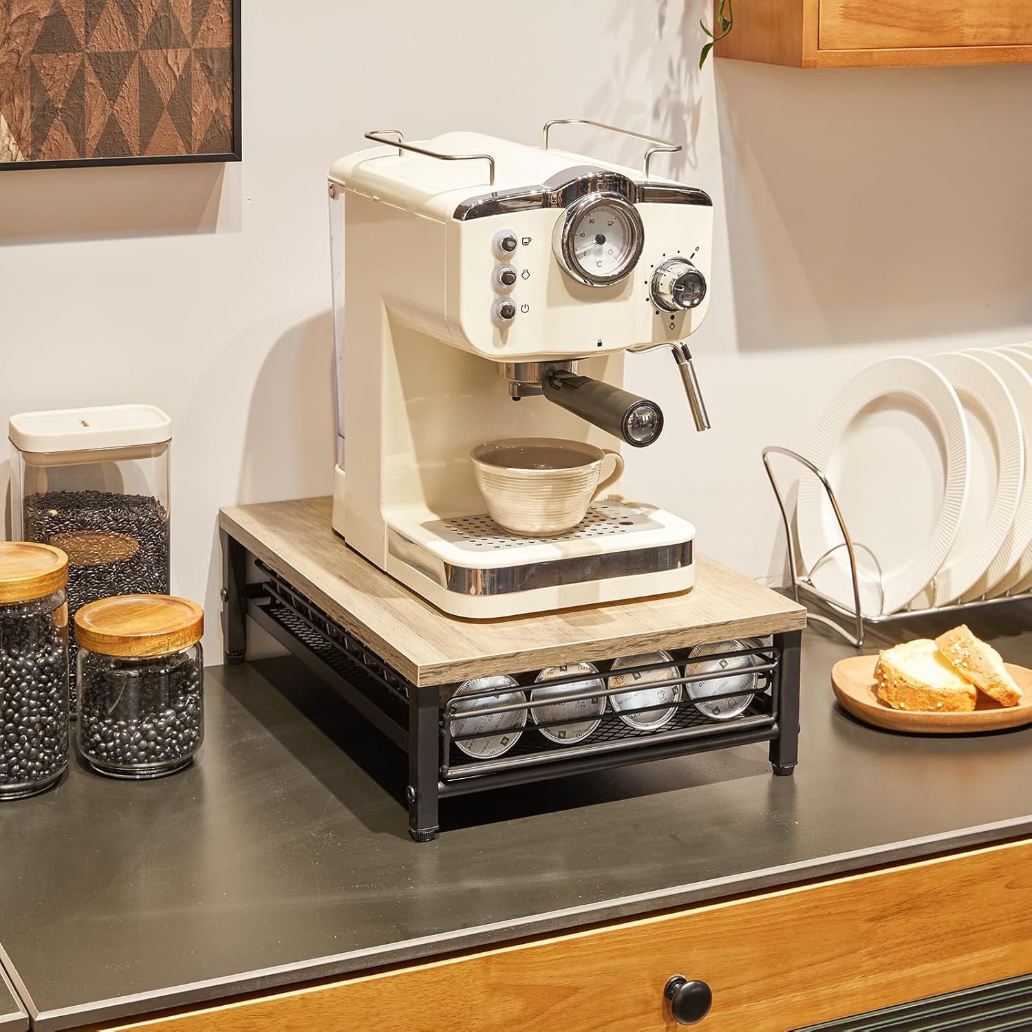 - 【EASY TO USE AND CLEAN】: The sliding drawer is easy to slide in and out, but it won't fall out on the floor.You can take out your coffee and enjoy it anytime. When the coffee station is dirty, just need to wipe.