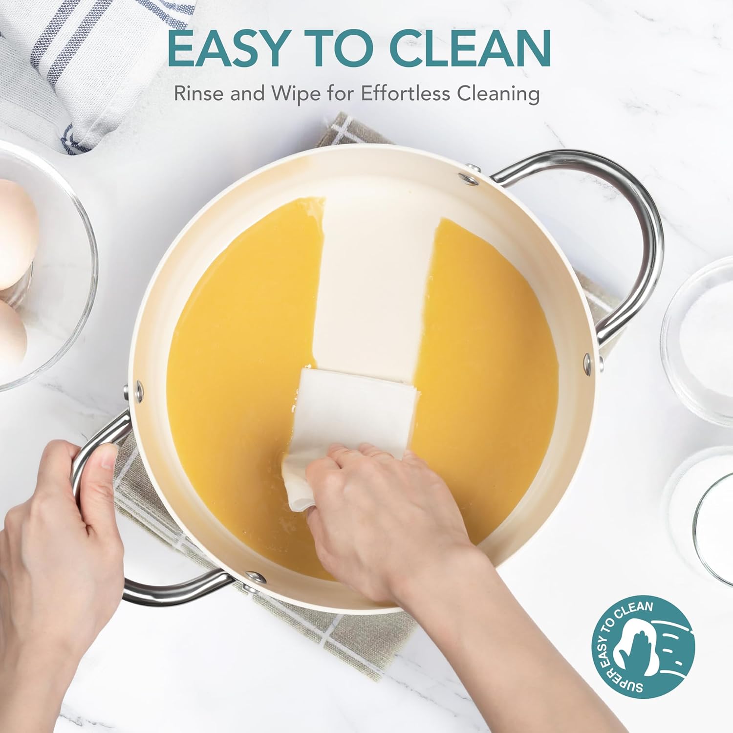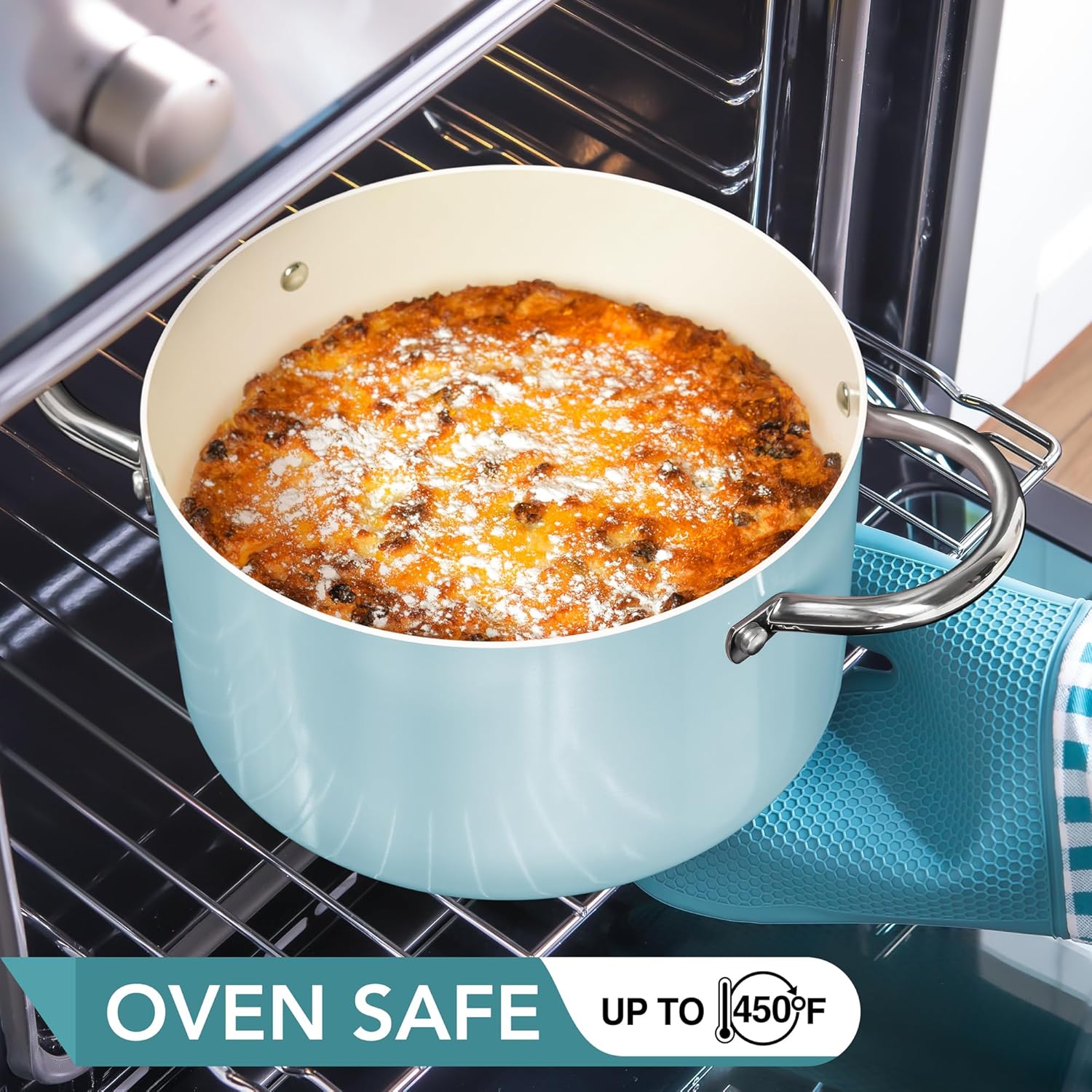 - Healthy & Non-Toxic Cooking: Our ceramic-coated stockpot is free of PFOA and PFOS, ensuring no harmful substances are released during cooking, allowing you to prepare meals with peace of mind for your family.