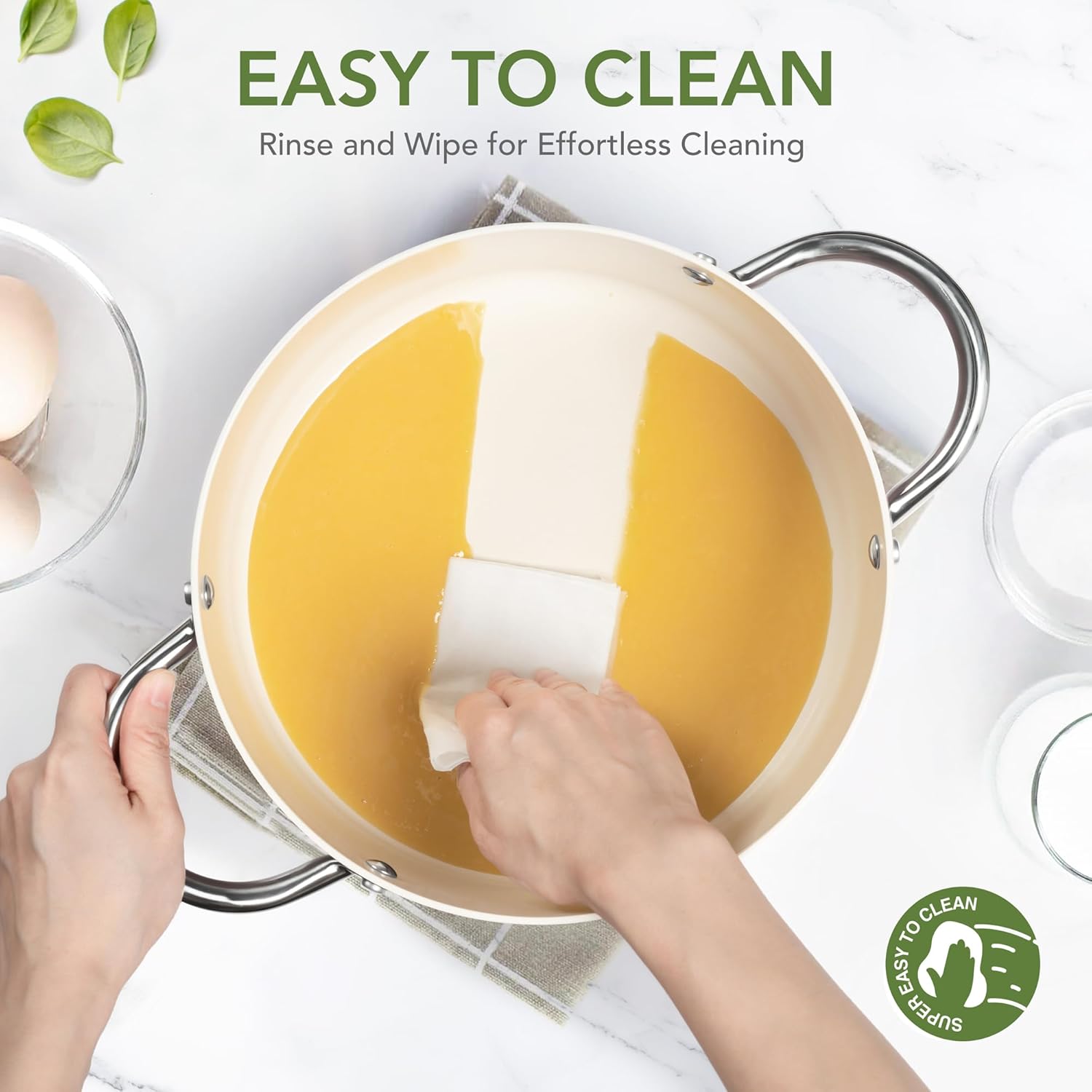 - Superior Nonstick Performance: The advanced nonstick coating prevents food from sticking, making cleaning a breeze and reducing oil use by 90%. Its durability ensures long-lasting nonstick performance, maintaining its quality over time. Hand washing recommended.