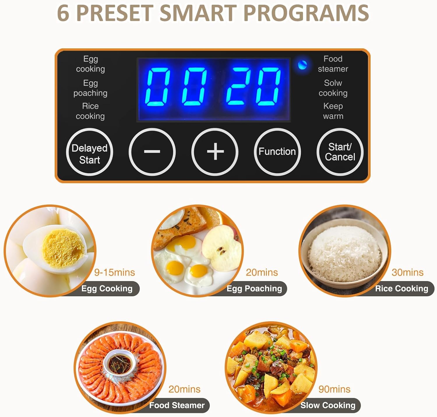 - VERSATILE COOKING OPTIONS: With 5 intelligent cooking programs including egg cook, slow cook, rice cook, food steamer, and egg poach, this 400W steamer ensures delicious results every time