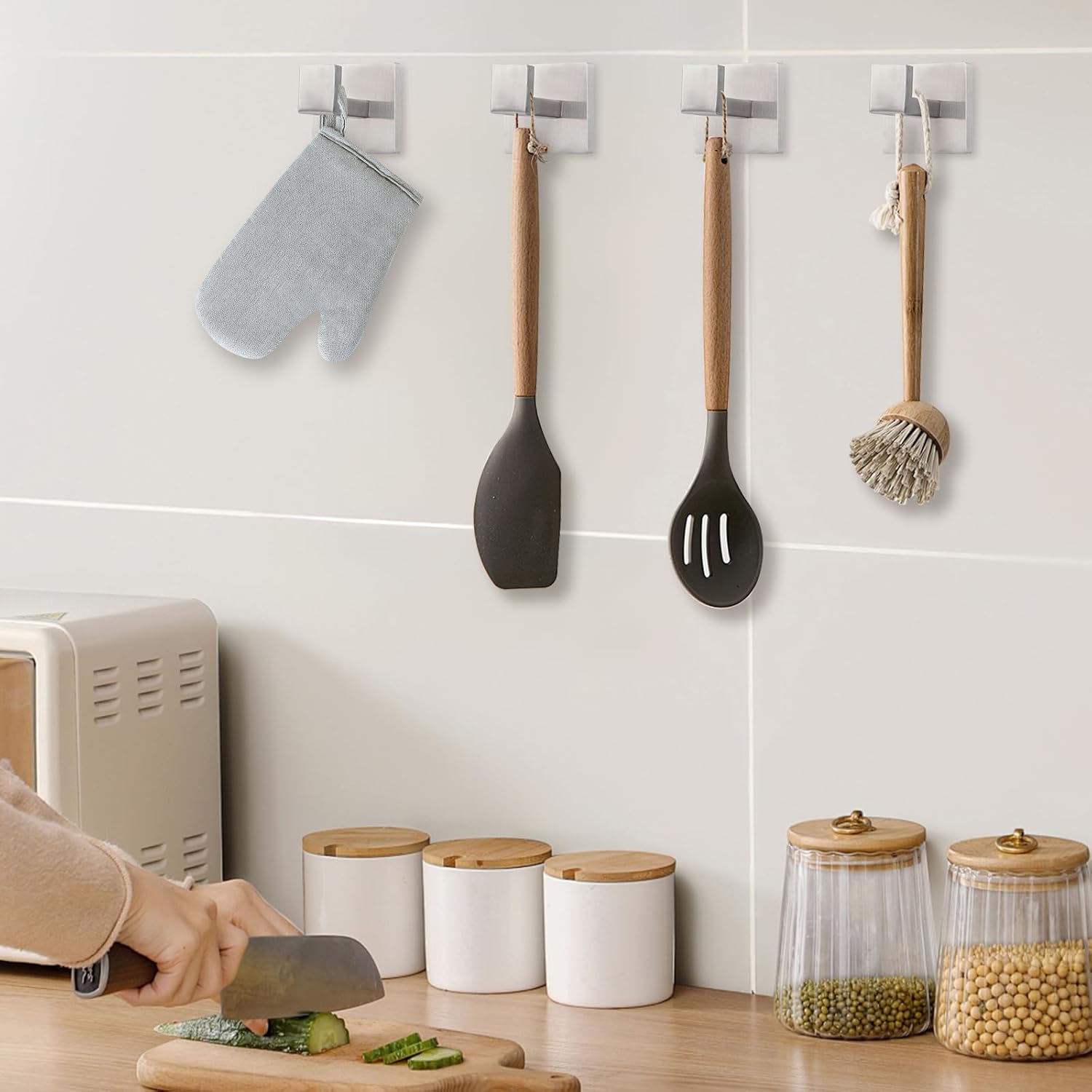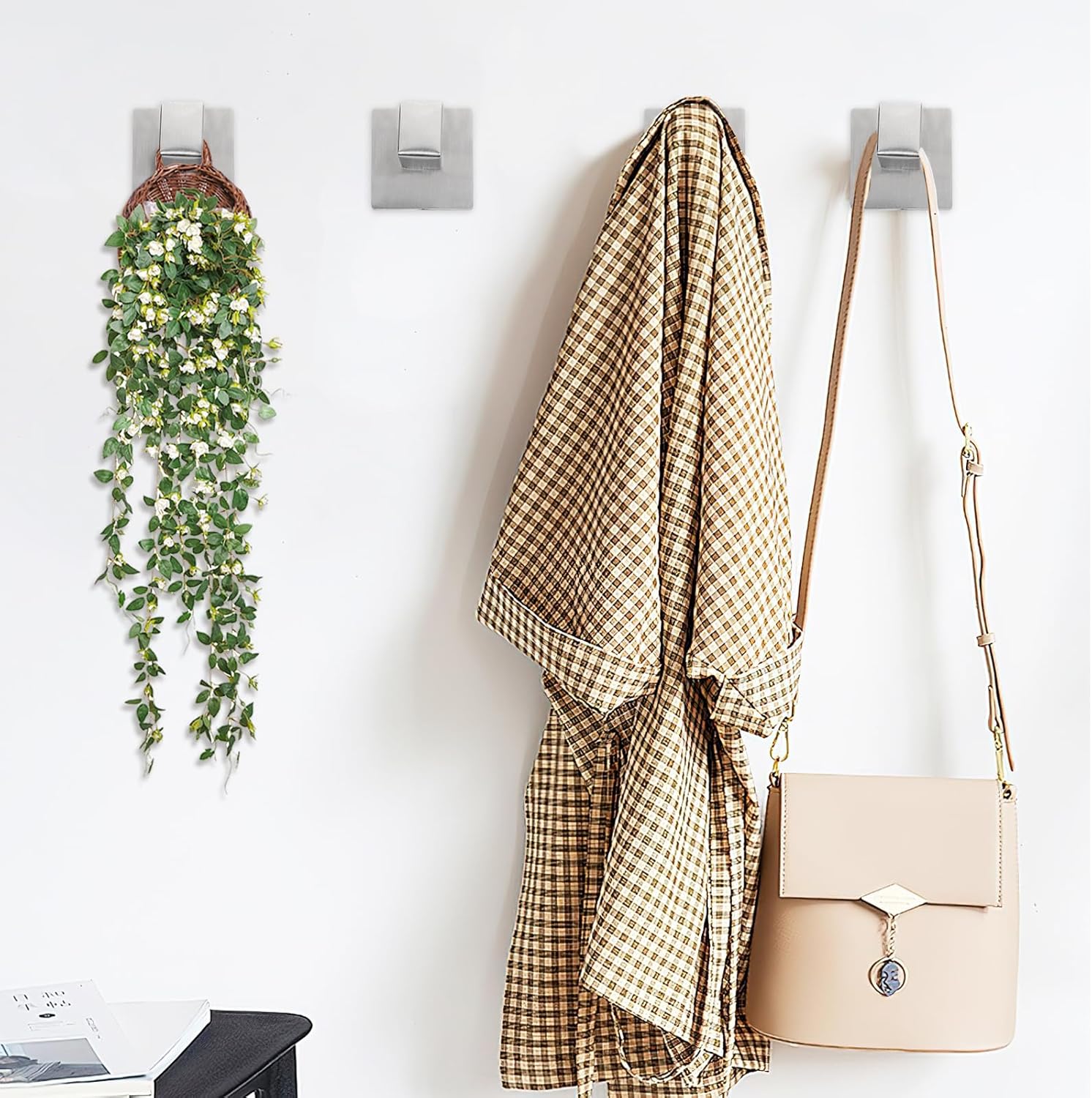 - Package Includes: Square silver hooks * 4, screws * 8, wall anchors * 8, hex keys * 1