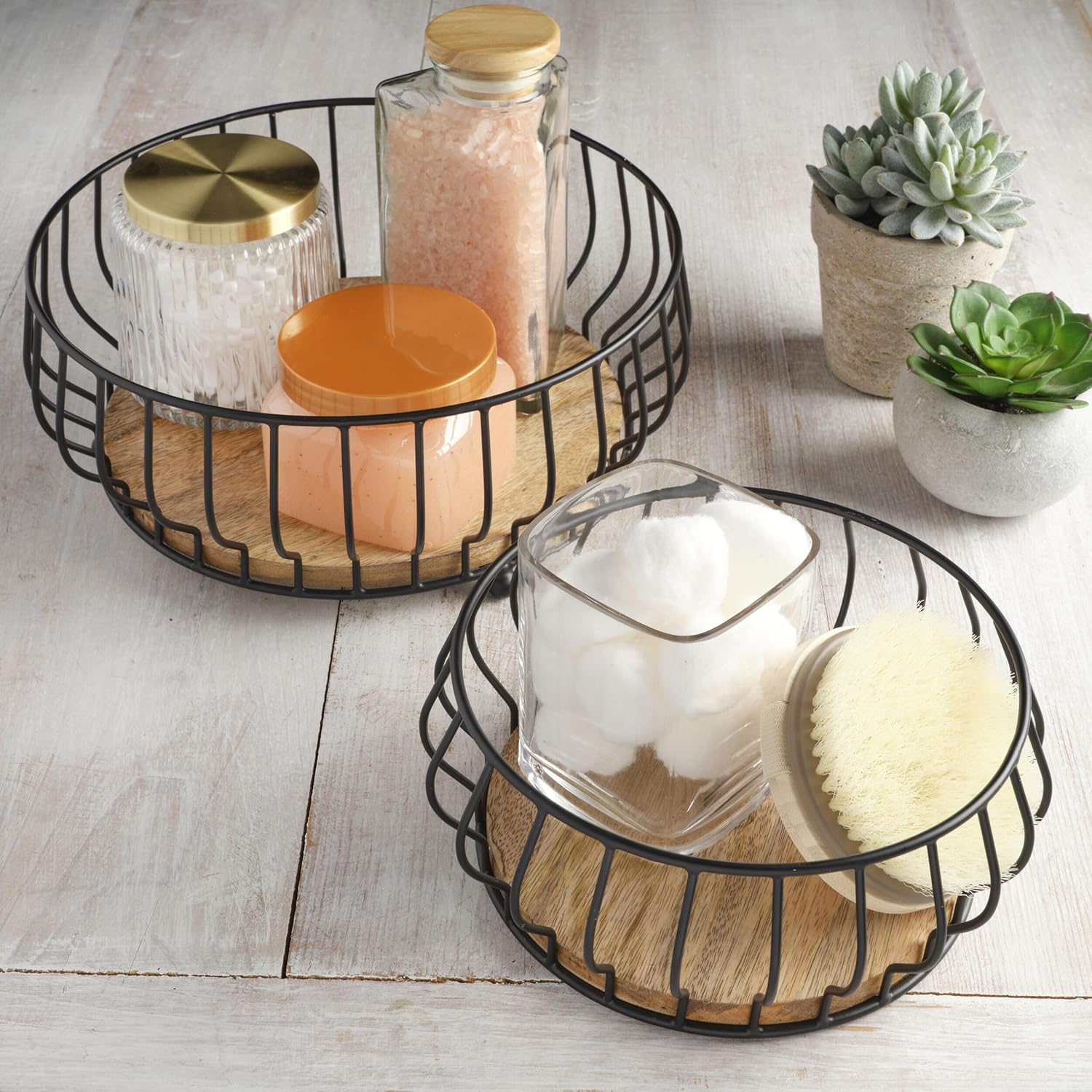 Gourmet Basics by Mikasa Savannah 2 Tier Metal Fruit Storage Countertop Basket, 12 x 12 x 16 Inch, Black