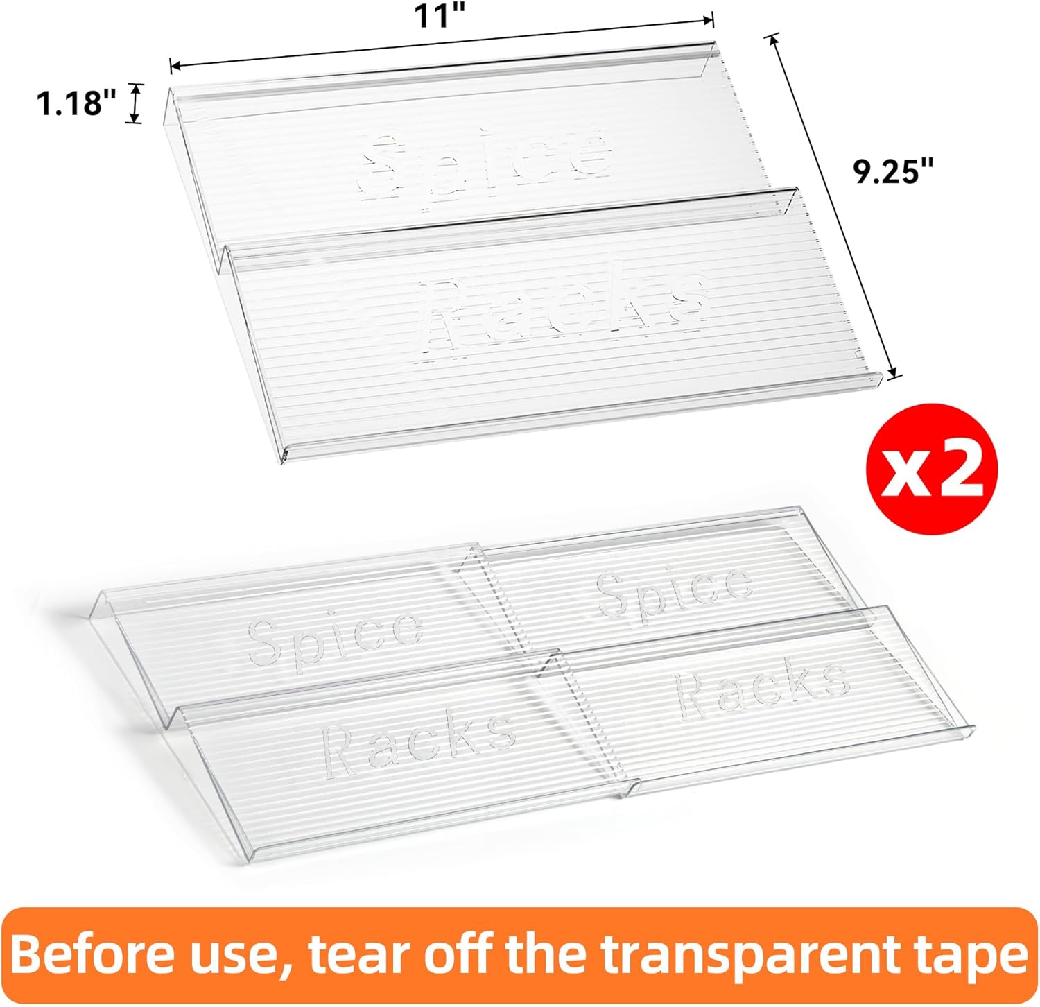 Spice Drawer Organizer, 2 Tier- 2 Pack Clear Acrylic Drawer Seasoning Organizer, Expandable From 11'' to 22'' Kitchen Spice Rack Organizers and Storage for Drawer (Jars not included)