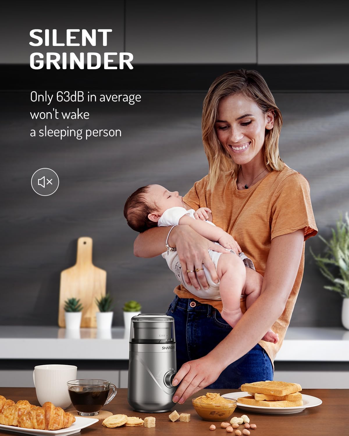- 【Quieter than Other Competitors】The average noise is 63 dB, which is quieter than other coffee grinders. Getting up early and grinding coffee beans without disturbing your families sleep in the morning.