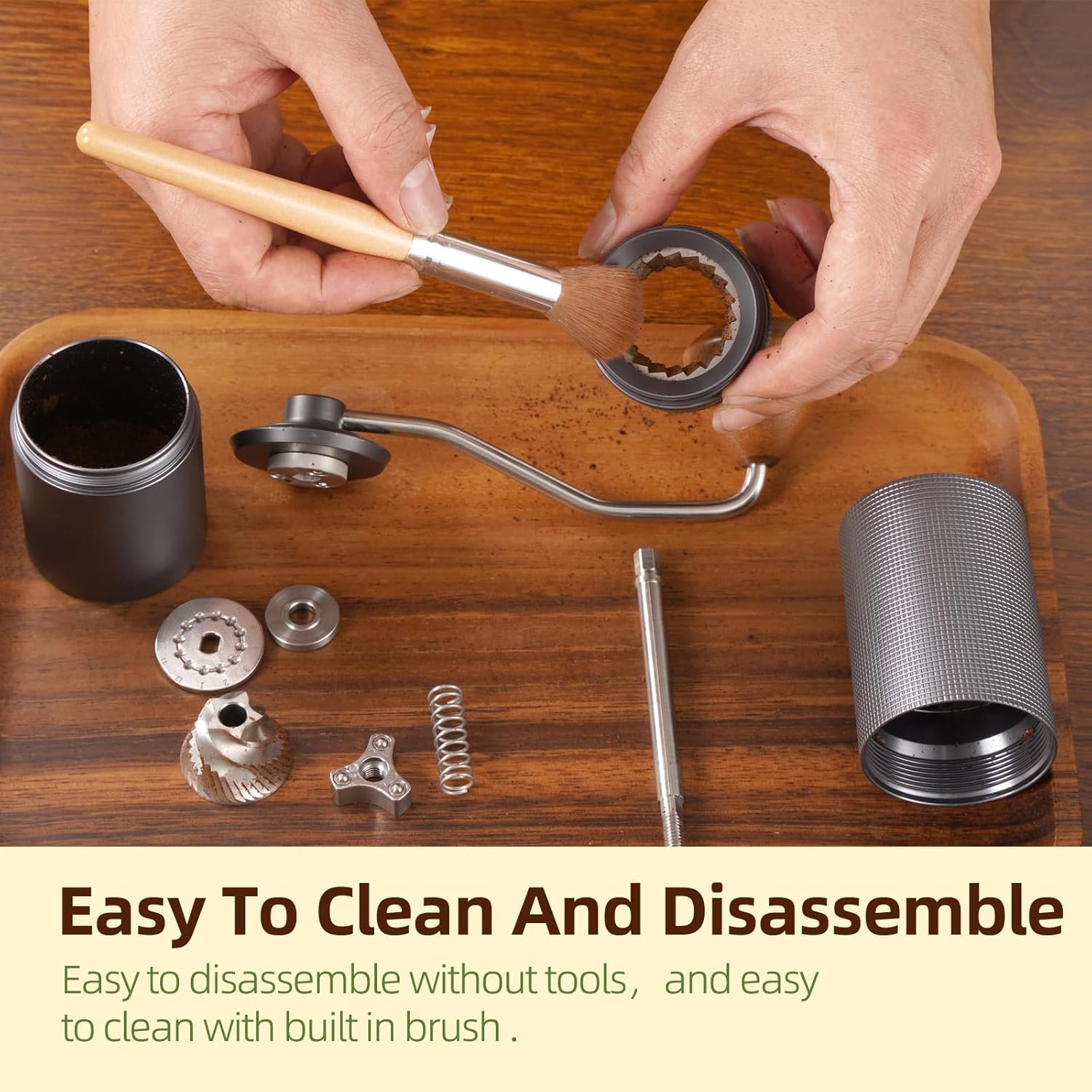 - Easy to clean :innovative design espresso grinder ,can be easily disassembled without tools, Detachable outer ring burrs,Thoroughly clean the deep roasted coffee oil, discover your beans real flavor