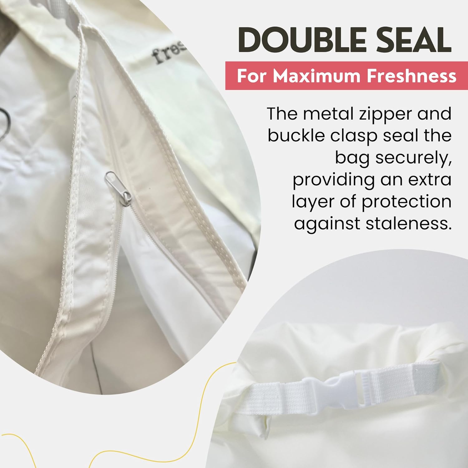 - ๐๐ฎ๐ฉ๐๐ซ๐ข๐จ๐ซ ๐๐ฎ๐ข๐ฅ๐ ๐๐ฎ๐๐ฅ๐ข๐ญ๐ฒ: Made with a strong outer layer and a food-safe liner inside. These are a great alternative to beeswax bread bags, linen bread bags, easy to use and built to last. The secure metal zipper and buckle clasp help seal in freshness. These machine-washable bags are a smart and sustainable choice.