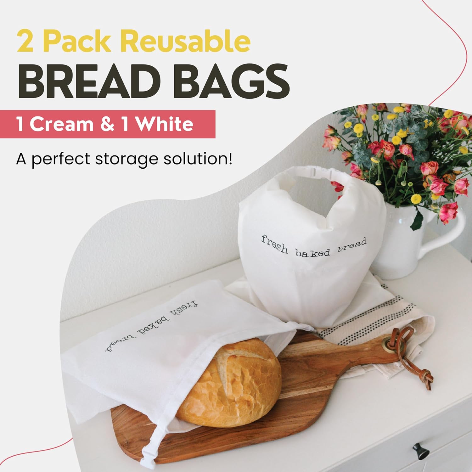 - ๐๐จ๐ซ๐ญ๐๐๐ฅ๐ ๐ ๐จ๐จ๐ ๐๐ซ๐๐๐ ๐๐ซ๐๐๐ ๐๐จ๐๐ ๐๐๐ : Keep your bread fresh with our pack of 2 reusable bread storage bags. These plastic farmhouse-style bread bags are perfect for fresh bread storage. Use them as homemade bread storage bags or bread bags for sourdough, they help preserve taste and freshness while adding a charming touch to your countertop.