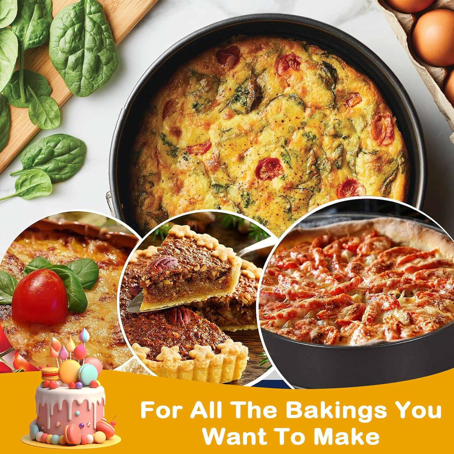 - 🍰【Customer Satisfaction】 : Please contact us if you have any problem with our round cake pan set, we will provide the best solution for you within 24 hours, we want to ensure you always have a smile on your face when you baking with our springform cake pan.
