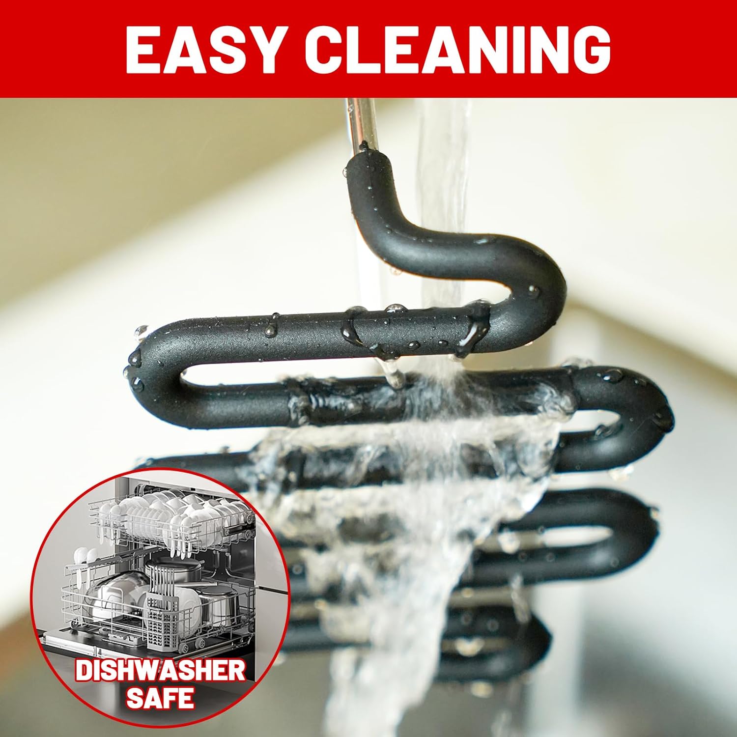 - nonstick silicone coating is very easy to clean. Food won't stick to the masher like metal, rubber or plastic models. You can pop it in your dishwasher for thorough cleaning and you are all set to go for the next round of mashing.