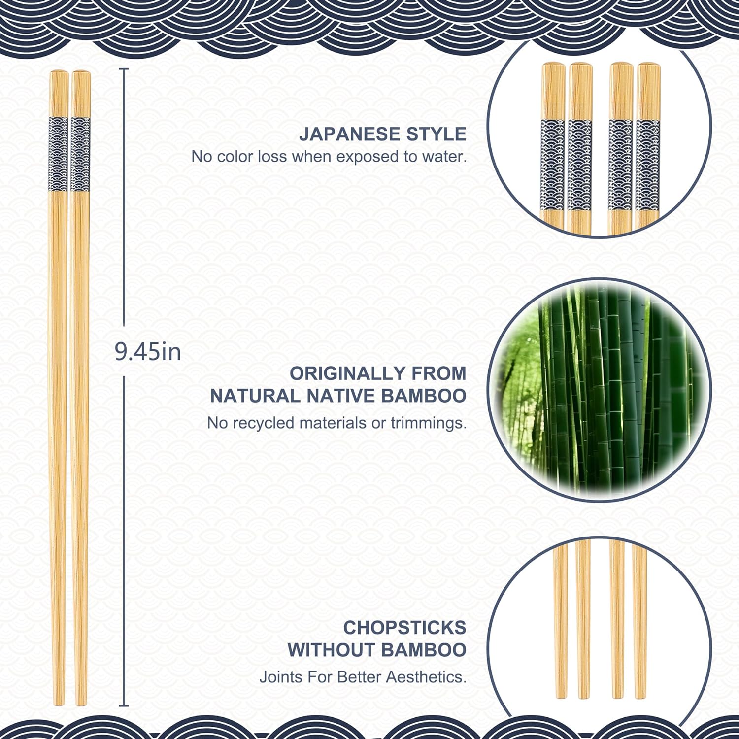 - 【CHOPSTICKS FOR BEGINNERS】Bamboo chopsticks are 9.45 inches,suitable for all hand sizes, easy chopsticks for adults, finely polished, food won't slip off