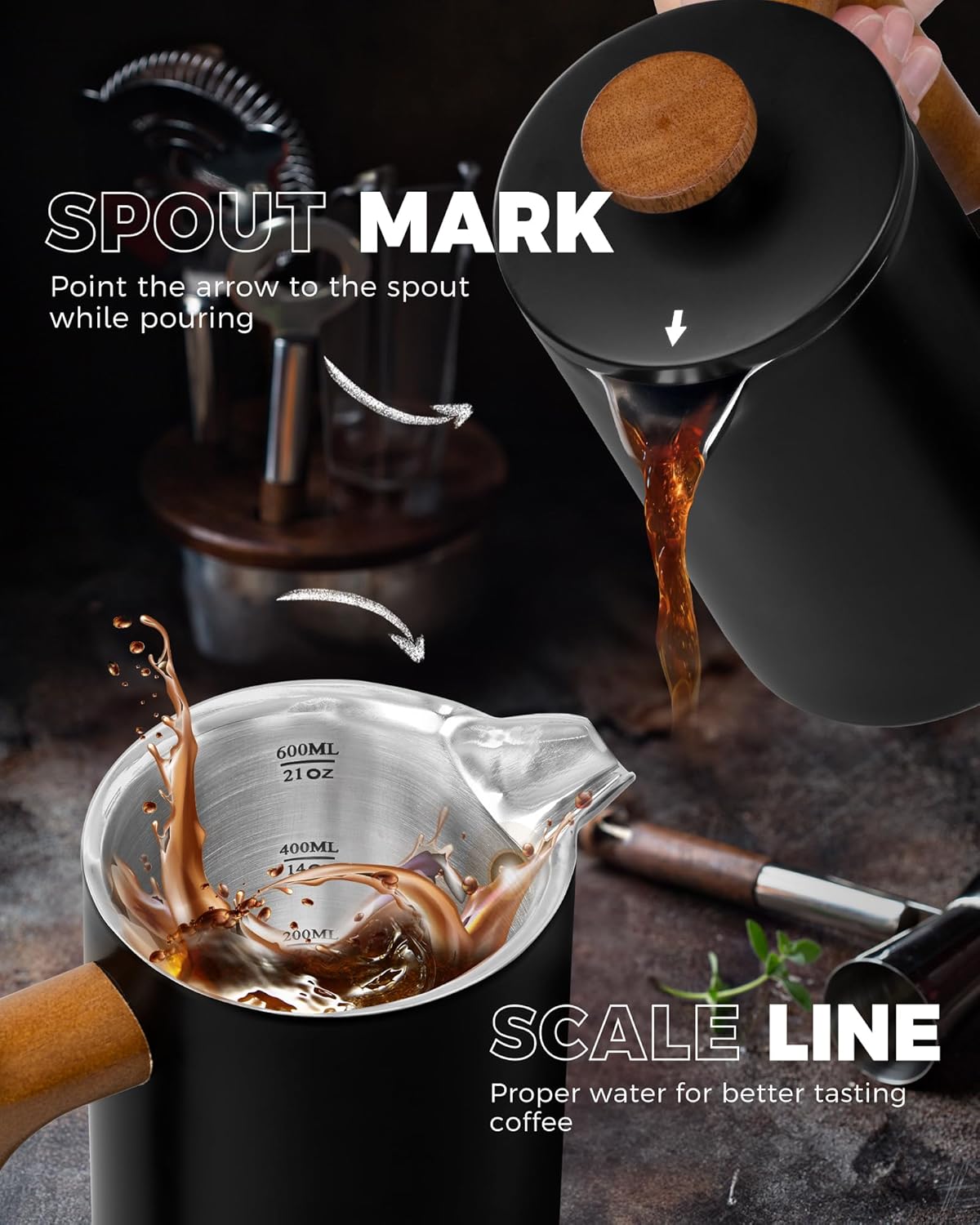POLIVIAR French Press Coffee Maker, 21 oz Coffee Press with Real Wood Handle, Double Wall Insulation & Dual-Filter Screen, Food Grade Stainless Steel for Good Coffe and Tea, JX2024-SFPB