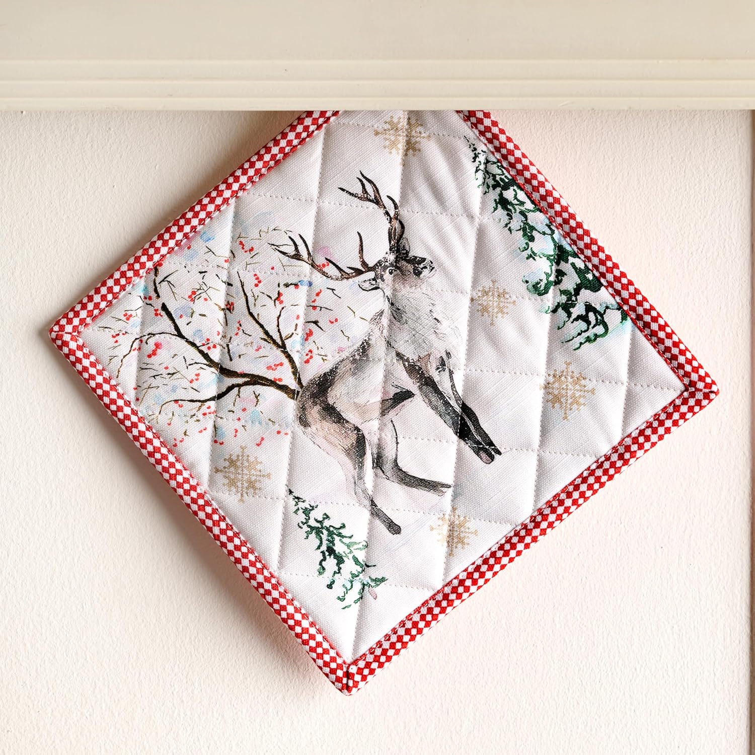 Maison d' Hermine Pot Holders 100% Cotton Heat Resistant Potholders 8" x 8" Hot Pads with Loop BBQ, Cooking, Baking, Grilling, Kitchen, Handling Hot Pans (Pack of 1, Rural Christmas)