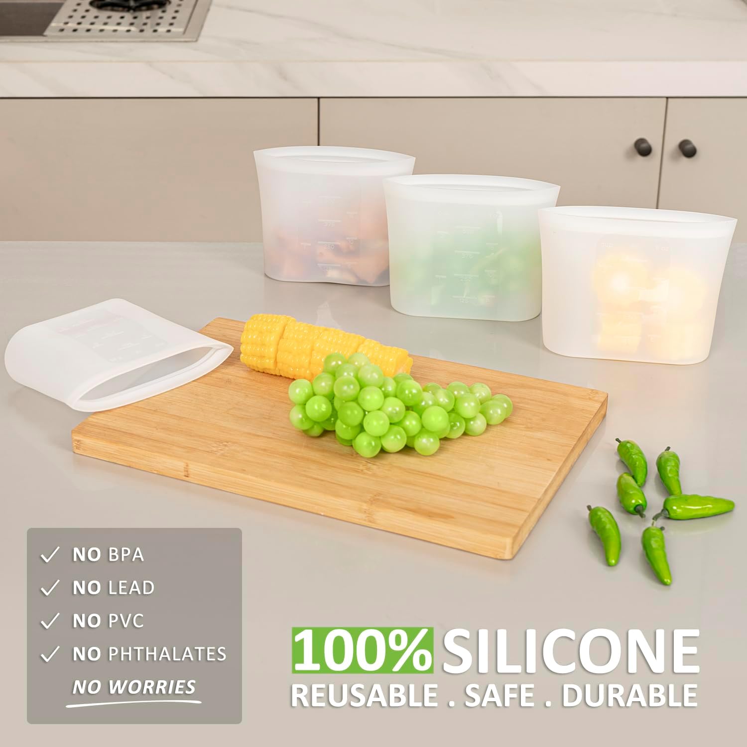 - 【100% SILICONE - SAFE & RELIABLE】Made of 100% food-grade silicone, our snack ziplock bags are PVC, chlorine, phthalates, and BPA-free. Non-toxic and odorless, they offer safe food storage to your family. Designed with durability in mind, their thick material and sturdy construction ensure long-lasting use. Lightweight and convenient for everyday use, they're the ideal storage solution