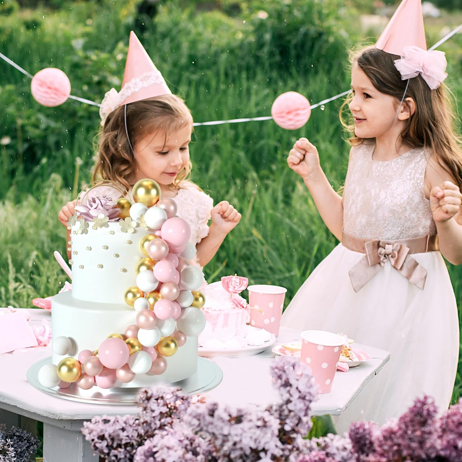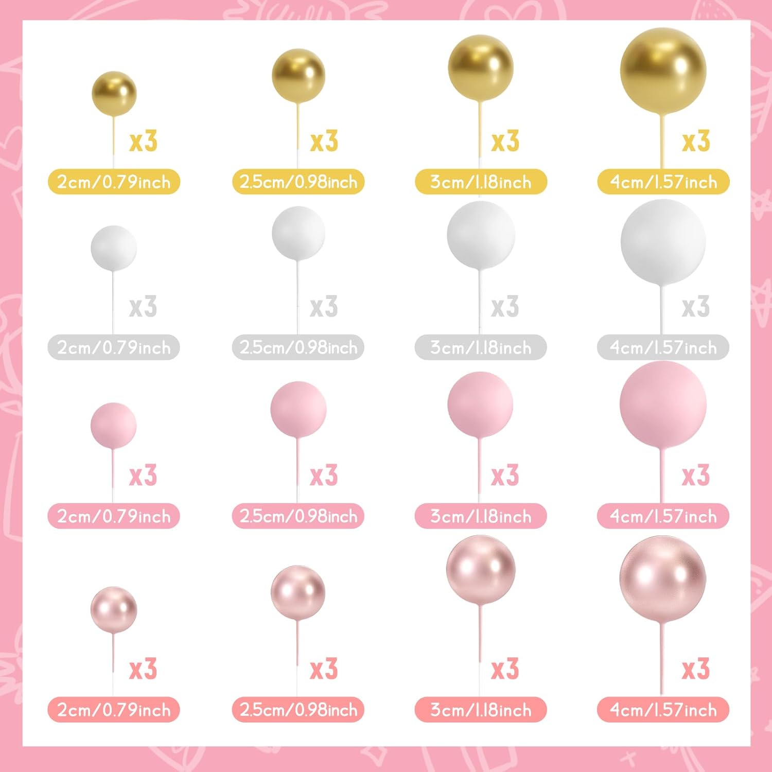 48 Pcs Cake Topper Decorations - Balloon Cupcake Toppers, Foam Balls for Birthday Party Wedding Cake Decorating (Rose Gold, Pink, White, Gold)