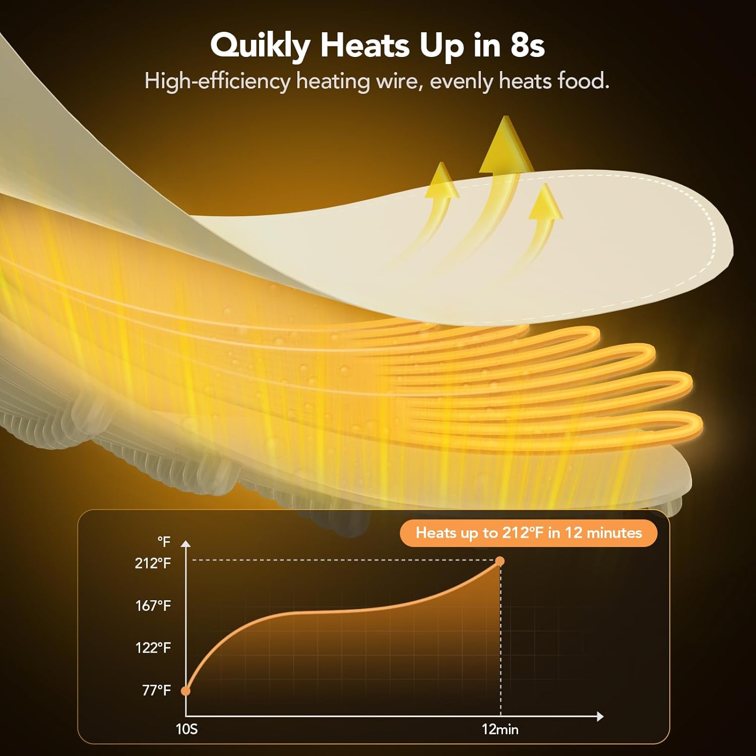 - [Customized Comfort] Dial in the perfect temperature with our 9-level temperature-controlled food warming mat. The 12-hour auto shut-off feature ensures convenience and caters to a variety of food preferences for a smooth dining experience