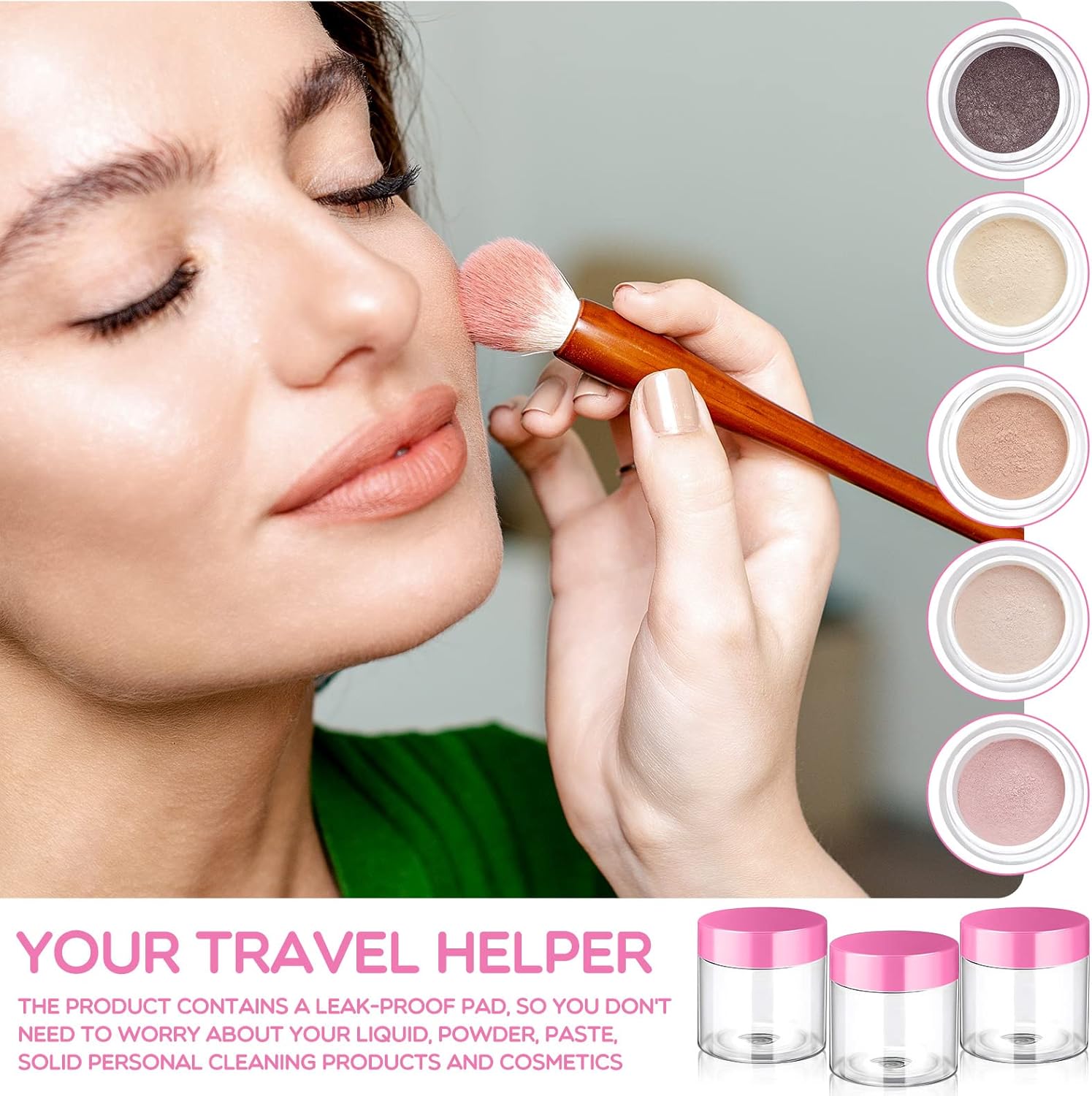 SATINIOR 6 Pack 1 oz Plastic Jars Containers with Lids Wide-mouth Refillable Leakproof Reusable Round Empty Jars for Travel Cosmetic Dry Food Spice Cookie Candy Home Kitchen Organizing(Pink)