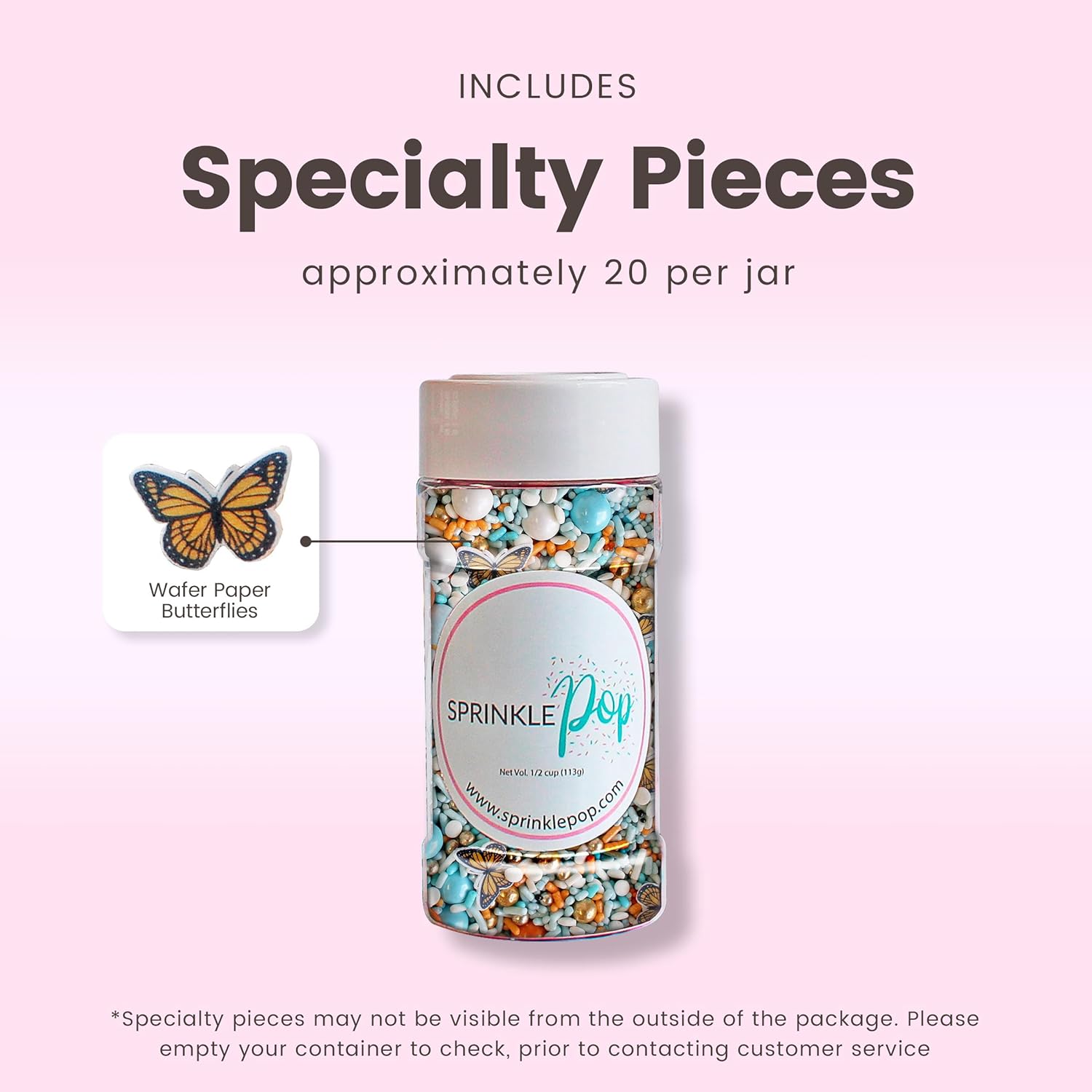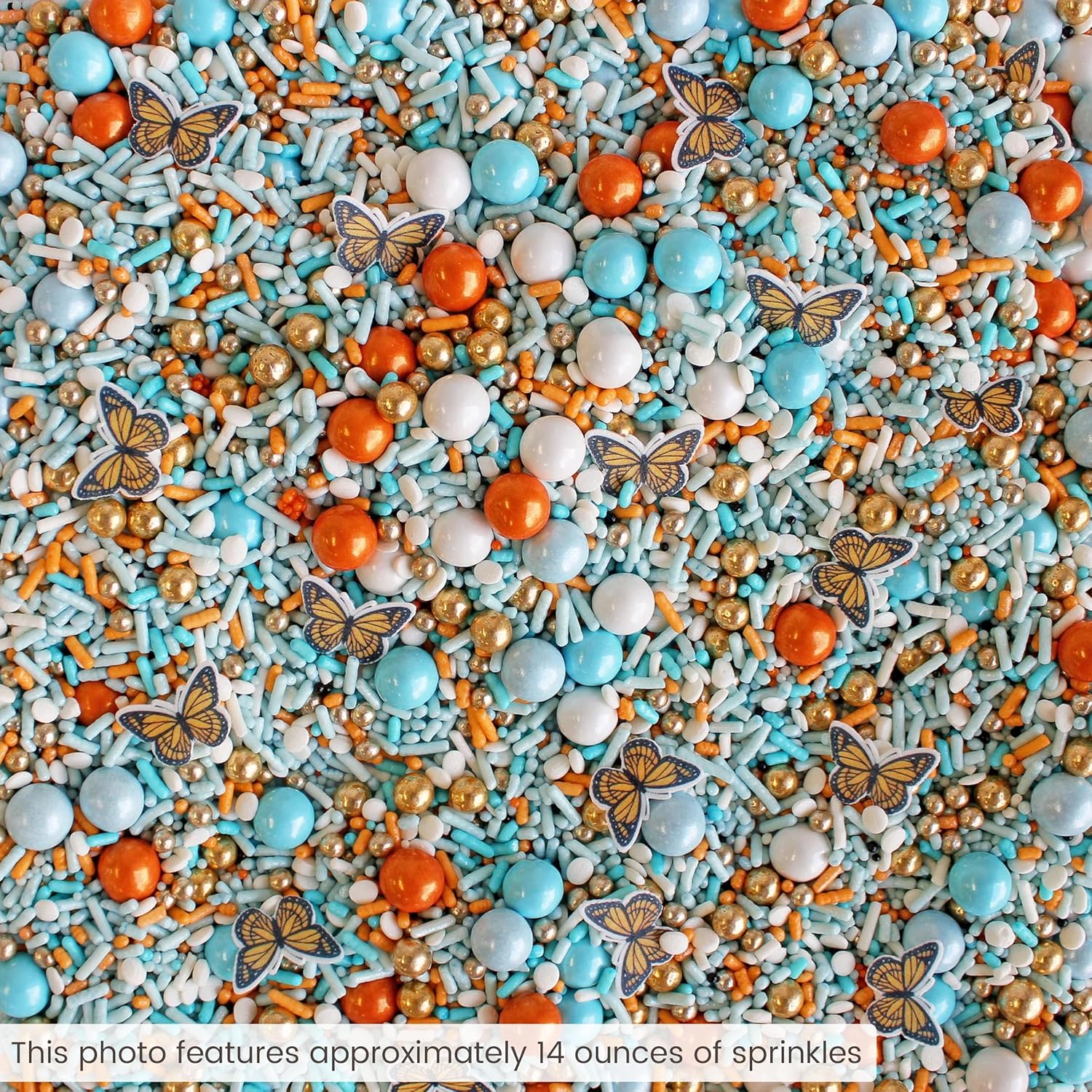 Sprinkle Pop Monarch Butterfly Sprinkle Mix| Blue Orange Sprinkles with ~20 Butterfly Wafer Paper and Gold Dragees| Decorating Sprinkles Made In USA for Mother’s Day Cupcakes Cakes Cookies Donuts, 4oz