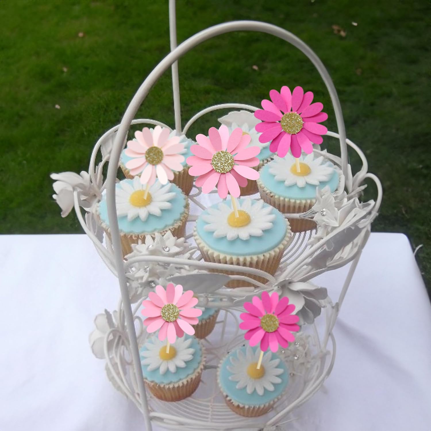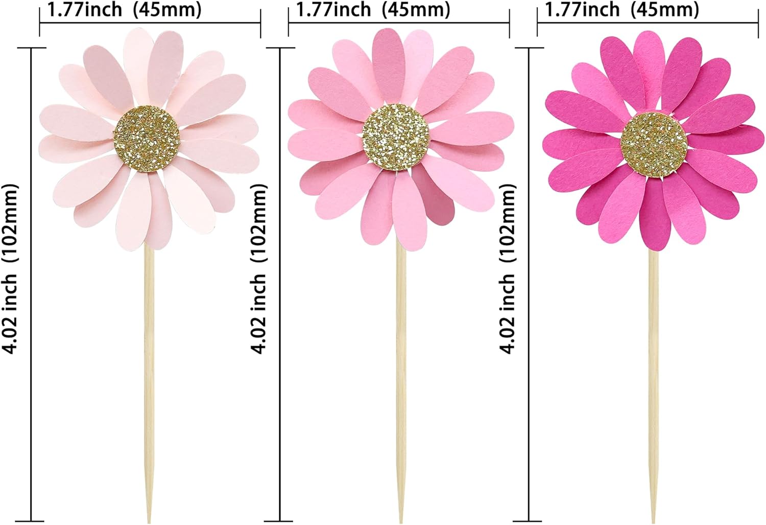 - 【Upgrade Quality】: 24Pcs Daisy Flower Cupcake Toppers are made of 300g card stock and 100% food grade bamboo stick, not easy to deform and fade, smooth edges without burrs, makes Daisy Flower cupcake toppers give you a wonderful visual enjoyment. It is durable enough for long lasting use.
