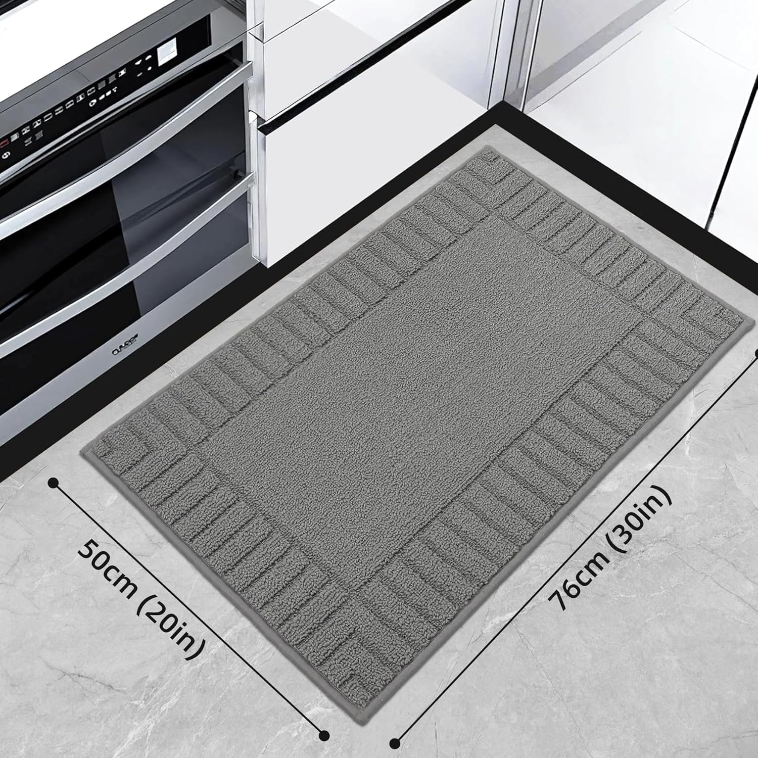 BEQHAUSE-Kitchen-Rugs-Washable-Kitchen-Mats-for-Floor Non-Slip Kitchen Mat Absorbent Kitchen Floor Mat with TPR Non Skid Backing,Grey,20”x30”