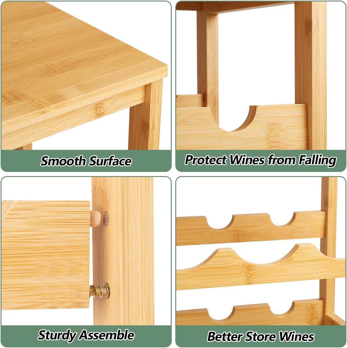 - ăExcellent WorkmanshipăNo worried about stability, this wine rack is made of 5-year Bamboo. It's assembled by good-quality tools according insturciton in package. Taking a few minutes you will get a perfect wine rack!
