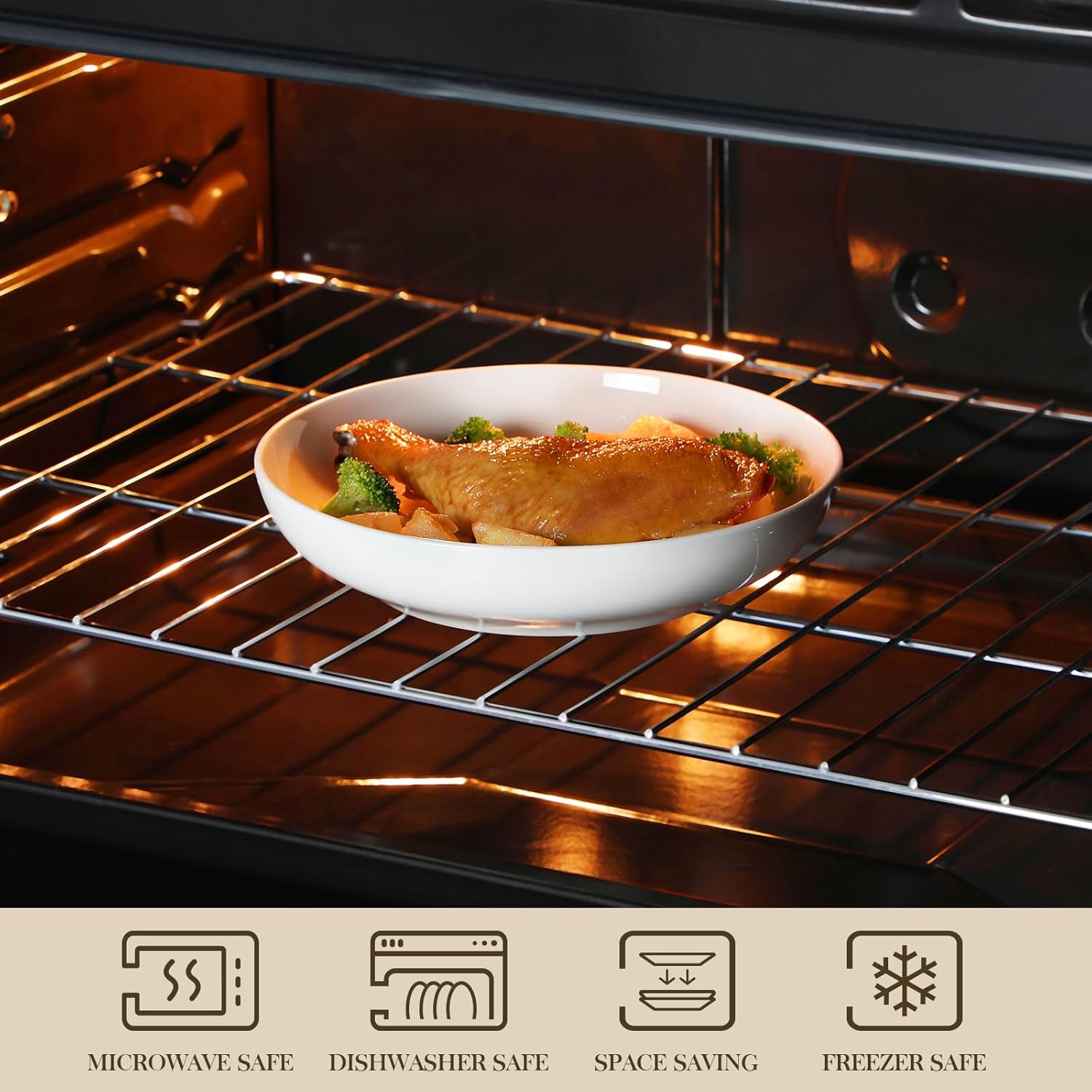 - 【WIDE & SHALLOW DESIGN】White Pasta Bowls featuring a wide and shallow design prevents spills and messes. Featuring a modern and minimalist design with a classic white finish and smooth glaze, these bowls complement any table setting and enhance dining experience.