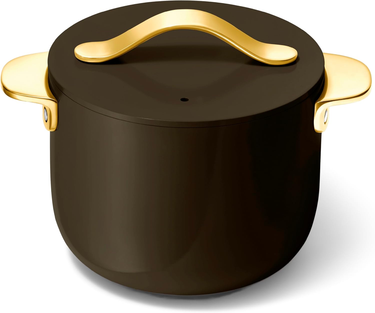 Caraway Petite Cooker - 2 Qt Ceramic Coated Pot - Free From Forever Chemicals - Perfect for Rice, Grains, or Sauces - Black