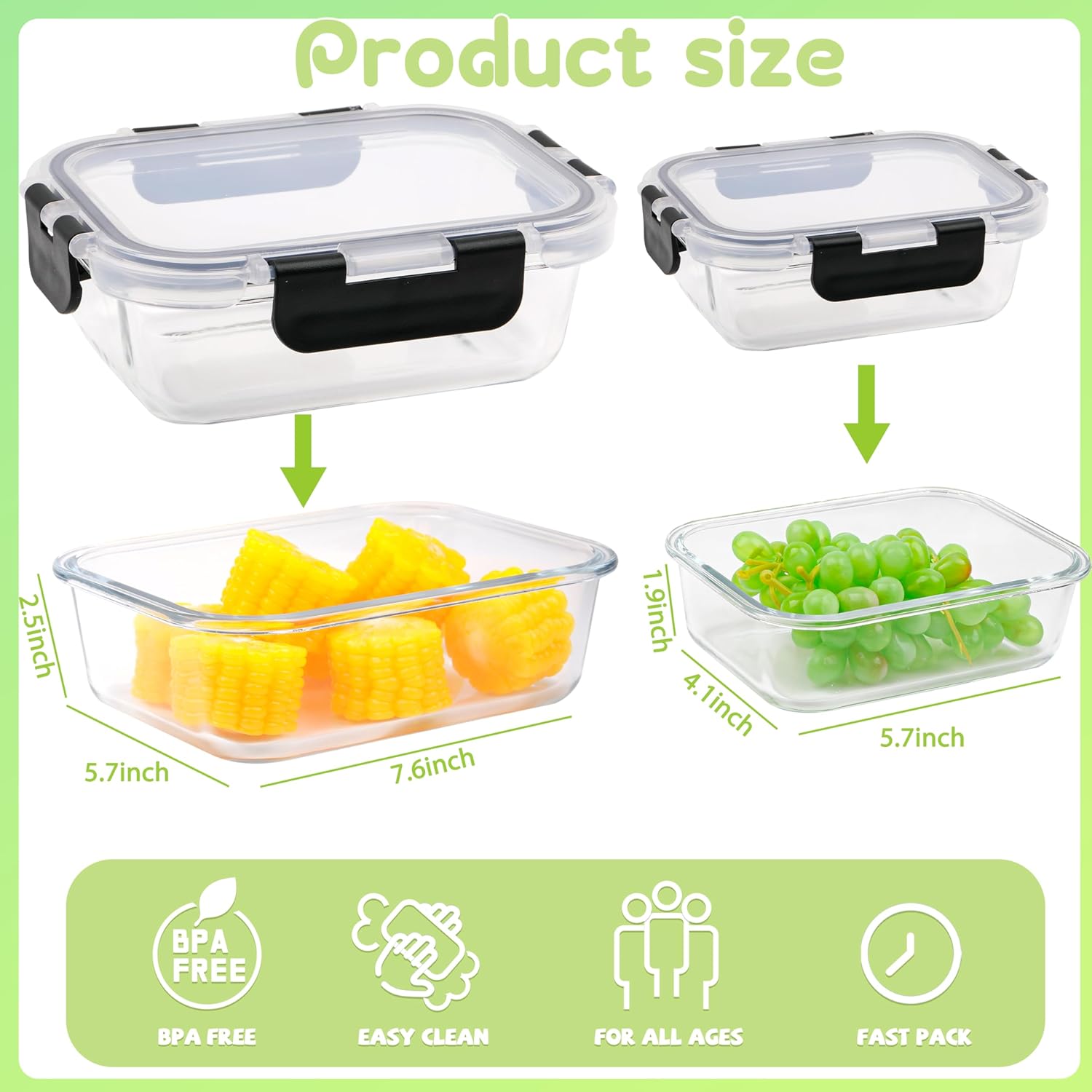 kakw10 Packs Glass Food Storage Containers,Glass Meal Prep Container for Lunch,can be used in the Microwave, Oven, Freezer and Dishwasher,with Upgraded Snap Locking Lids. (10 Packs)
