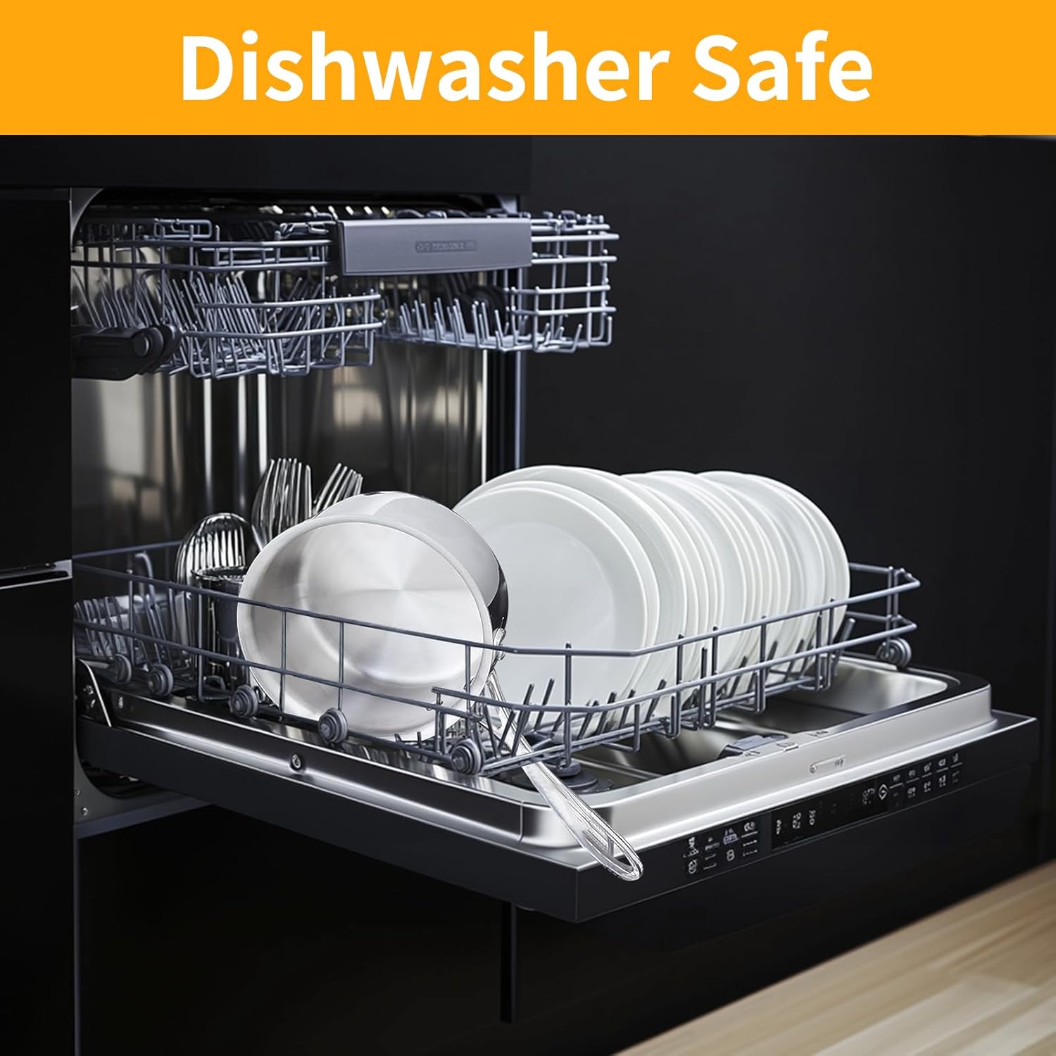 - Tri-ply Stainless Steel Construction: 18/10 stainless steel pot internal mirror polishing treatment and easy-to-read measurement marks, external matte treatment to prevent long-term scratching, pure aluminum core sandwiched between two layers of stainless steel, all induction is ready. The triple-layer structure ensures excellent rapid heating and uniform heat dissipation.