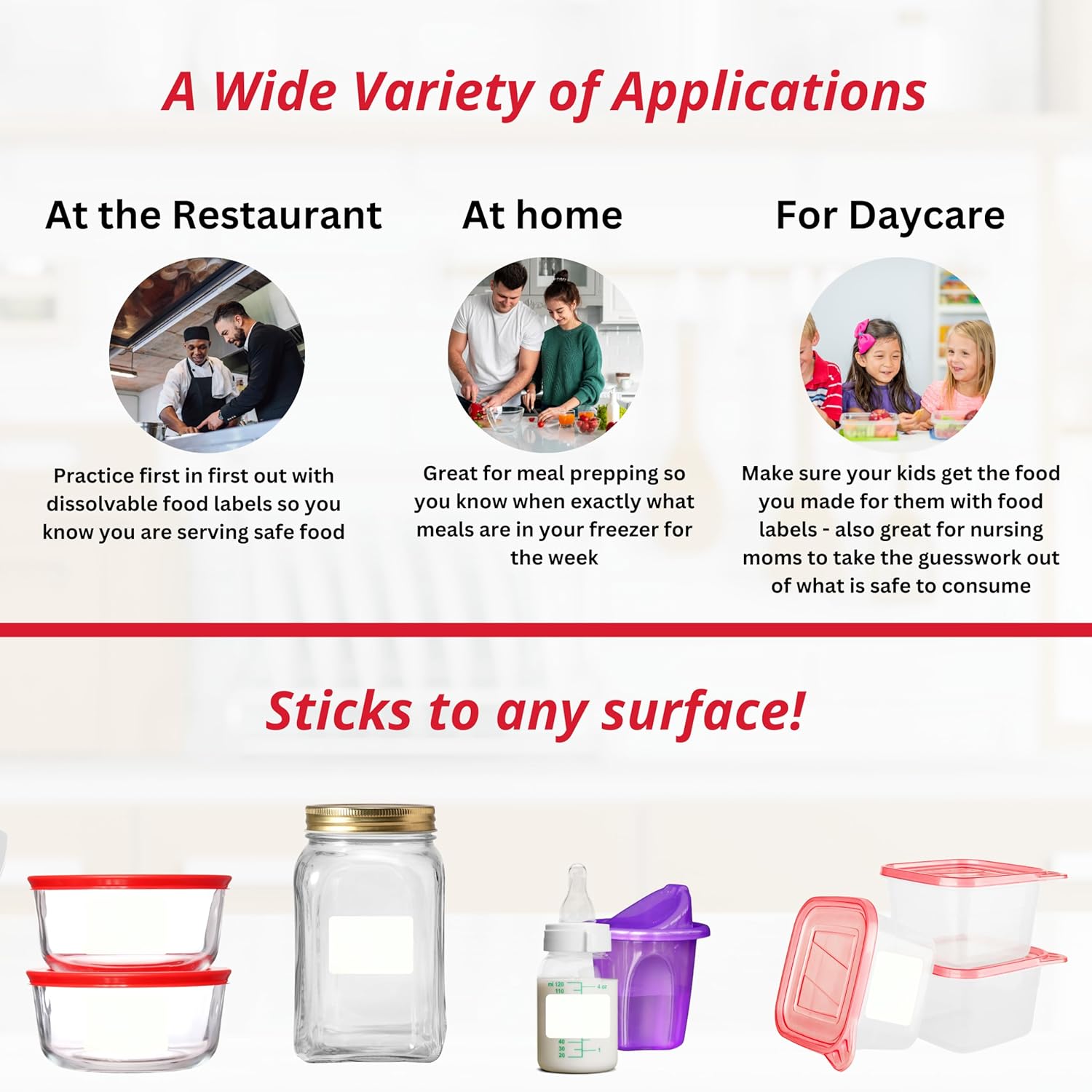 - Fully Dissolvable: These labels for food containers dissolve completely in water, whether in the dishwasher or under running water, leaving no sticky residue behind. They are perfect for labeling food containers or freezer storage and can be effortlessly removed after use.