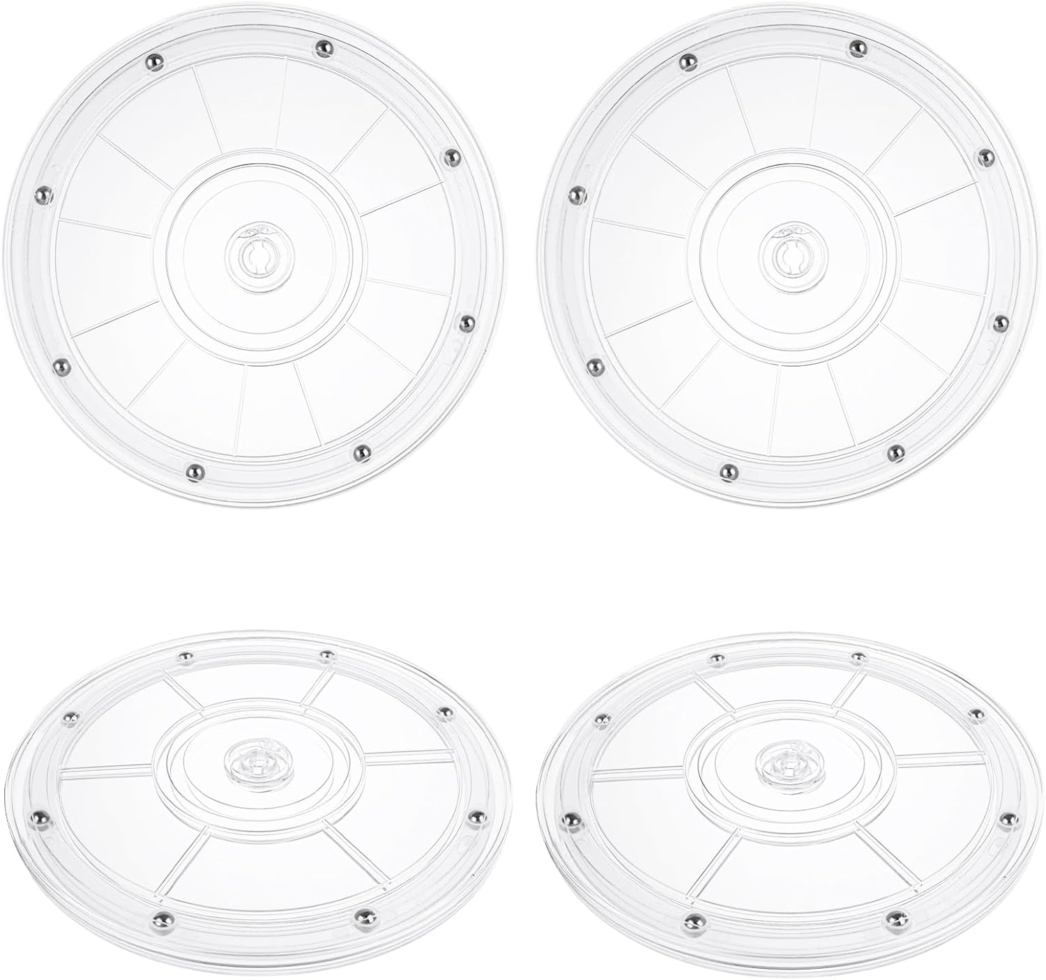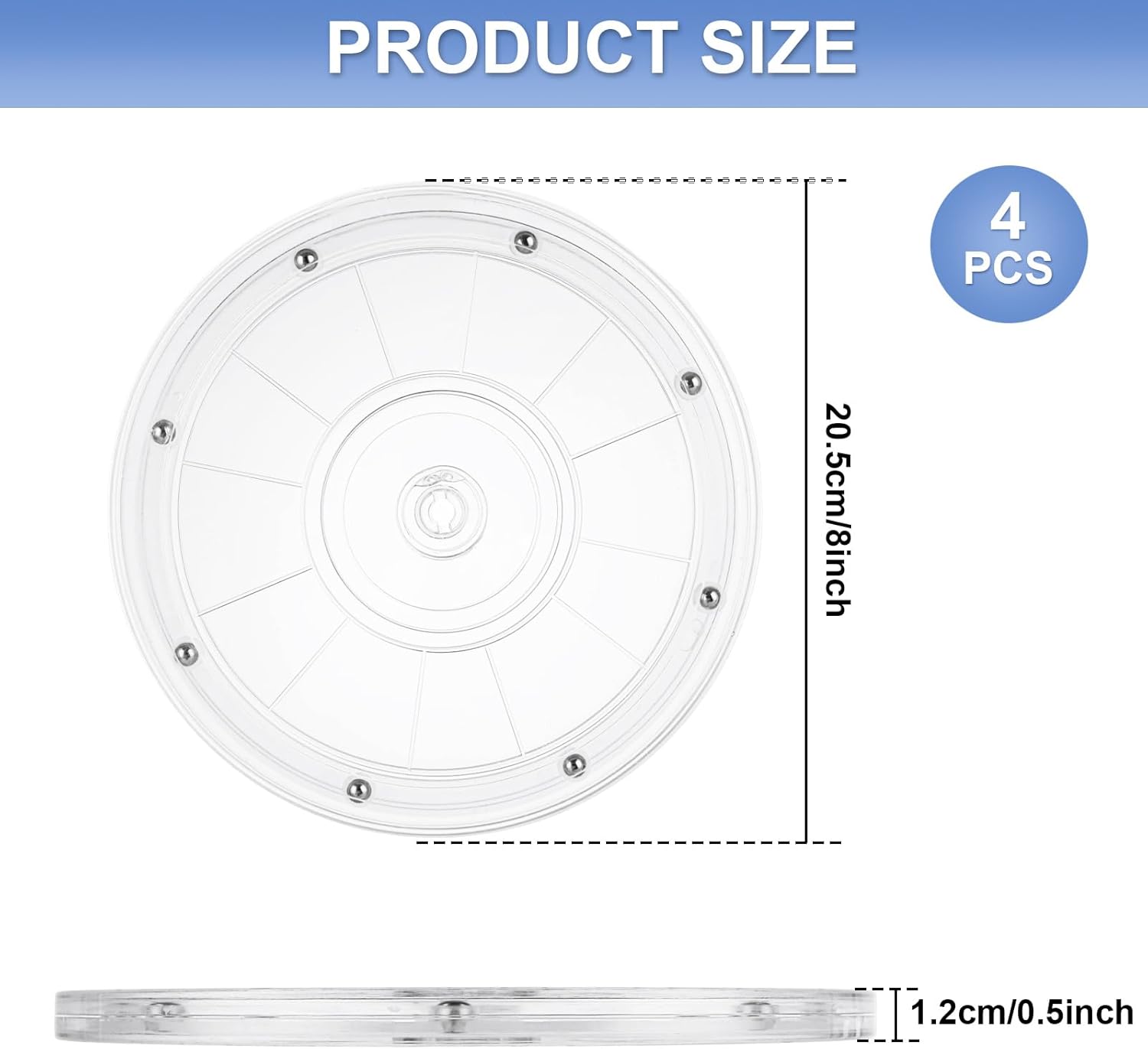 4 Pcs 8 Inch Lazy Susan Turntable Acrylic Ball Bearing Rotating Tray, Clear Turntable Organizer, Rotating Base Clear Acrylic Plates for Pantry, Cabinet, Spices, Makeup, (360˚ Rotation)