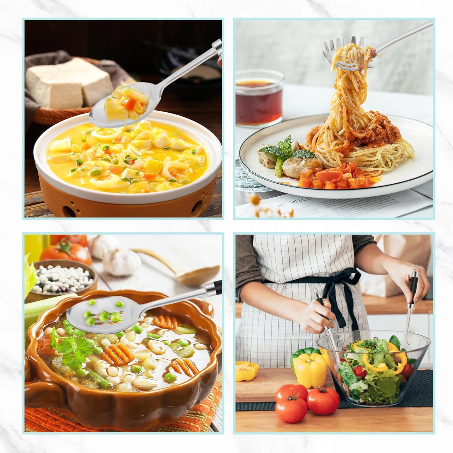 - Heat-resistant handles: Each stainless steel cook's spoon measures 12.5" in length, with high-quality plastic added to the handle for heat insulation, and a loop at the end for easy hanging and storage. Length: 12.5", Net weight: 0.69lb, ideal for reaching into deep pots to serve hot food.