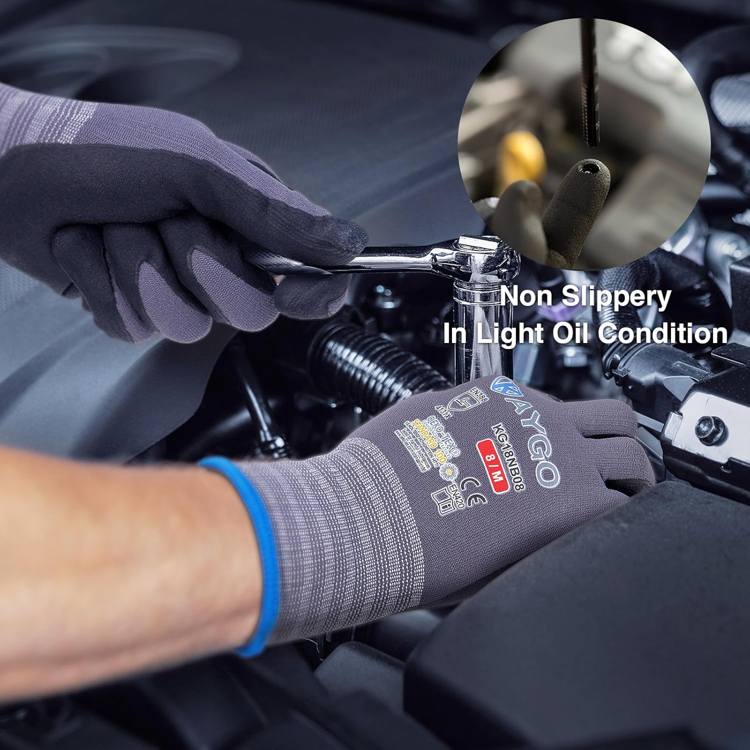 - SUPERIOR GRIP and ABSOLUTELY BREATHABILITY:Micro-Foam Nitrile coatings are compatible with light oils and will provide a good grip and excellent abrasion resistance. Ultrathin Design provide absolutely breathability and with water repellent performance.