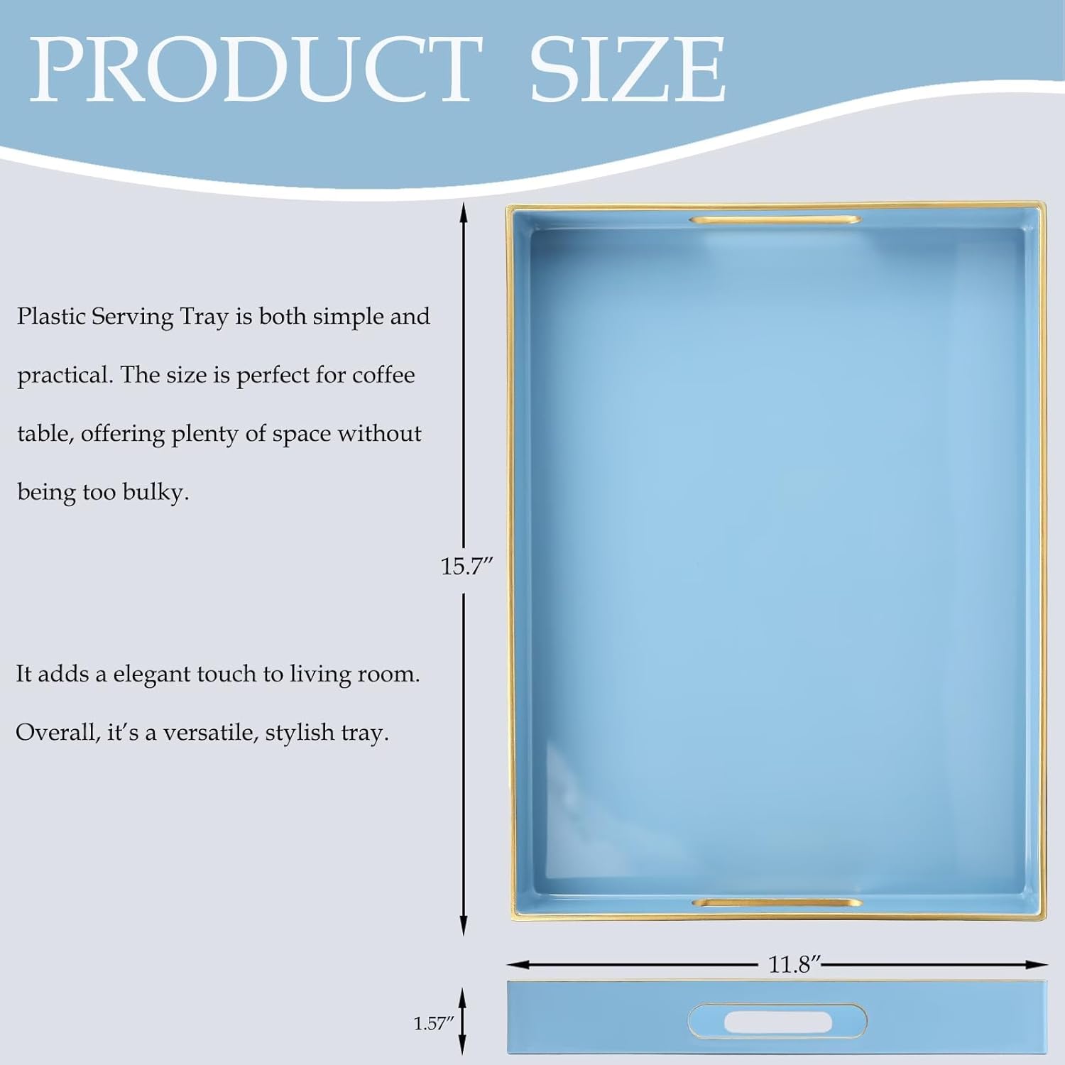 Spsyrine Blue Plastic Serving Tray for Ottoman, Coffee Table, Rectangle Decorative Tray for Entertaining, Outdoor, Living Room, Home Decor