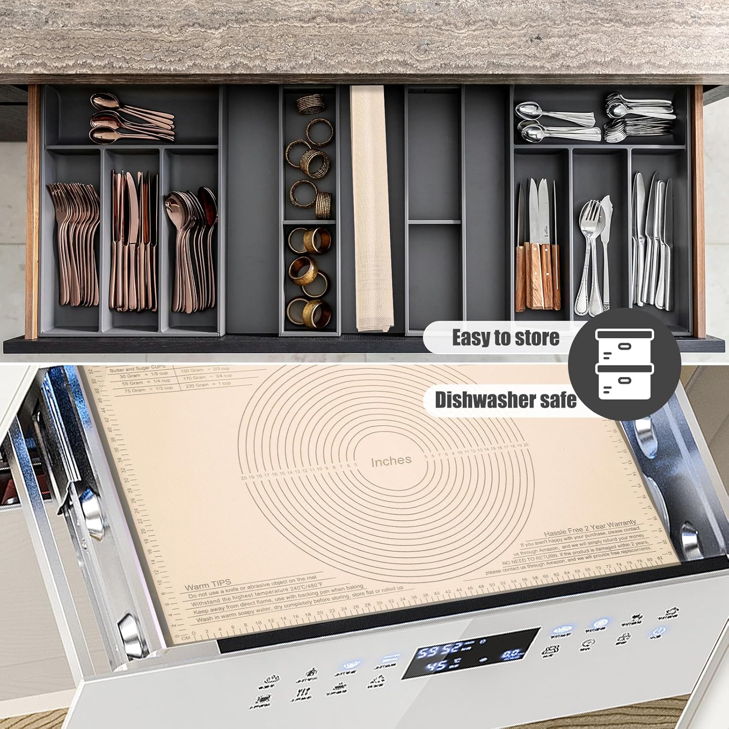 - 【Easy to Clean and Store】: As the excellent nonstick surface design, our pastry mats are super easy to clean and dishwasher safe. Just rinsed it by warm soapy water and let air dried. Stored it by fold or roll up, it’s great to save space. A must-have accessory for any baking.