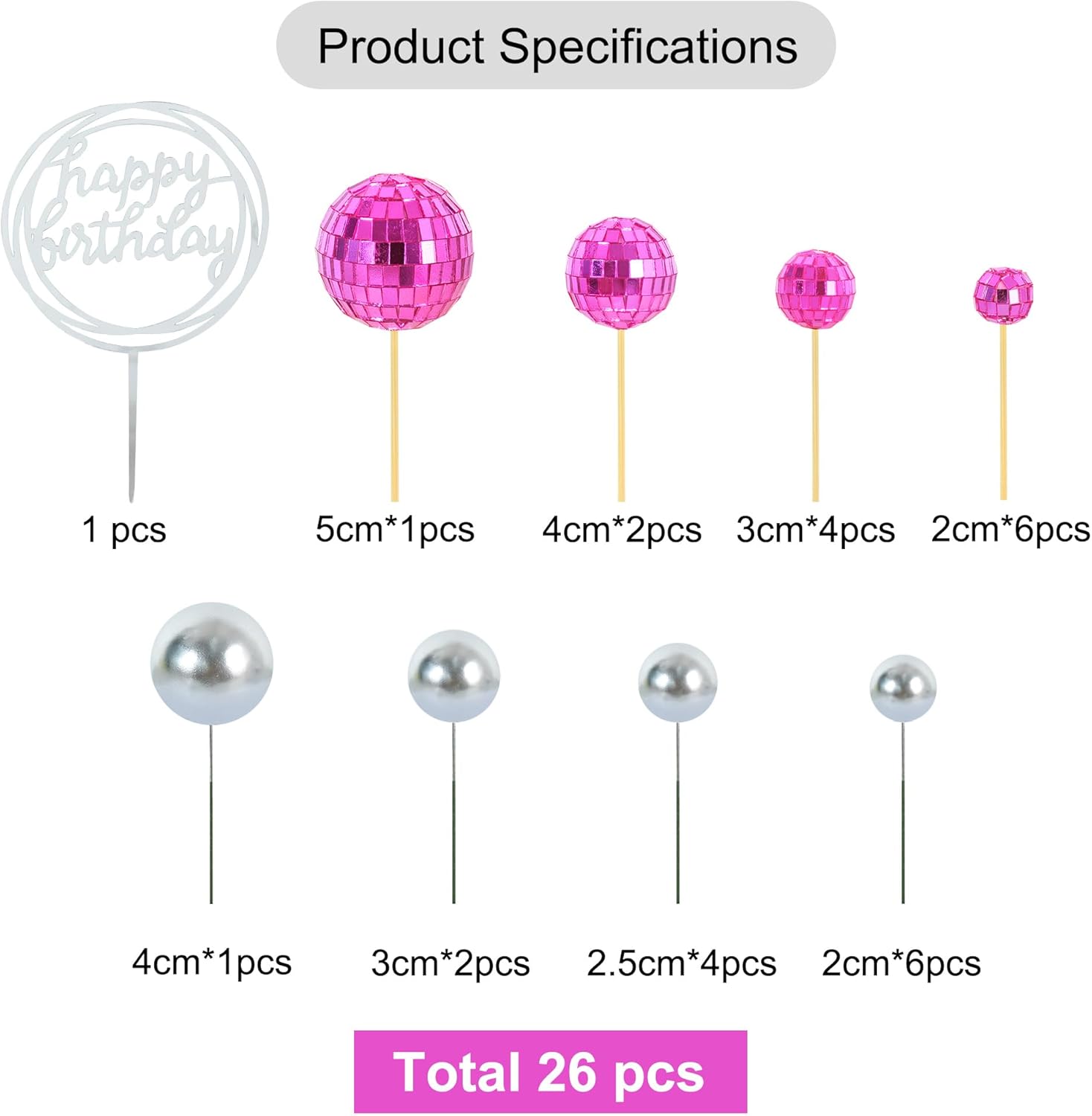 - 【Package】You will get 13 x hot pink disco balls cake toppers in different size, 13 x silver balls cake toppers in different size, and 1 x happy birthday cake topper, very exquisite and super valuable.