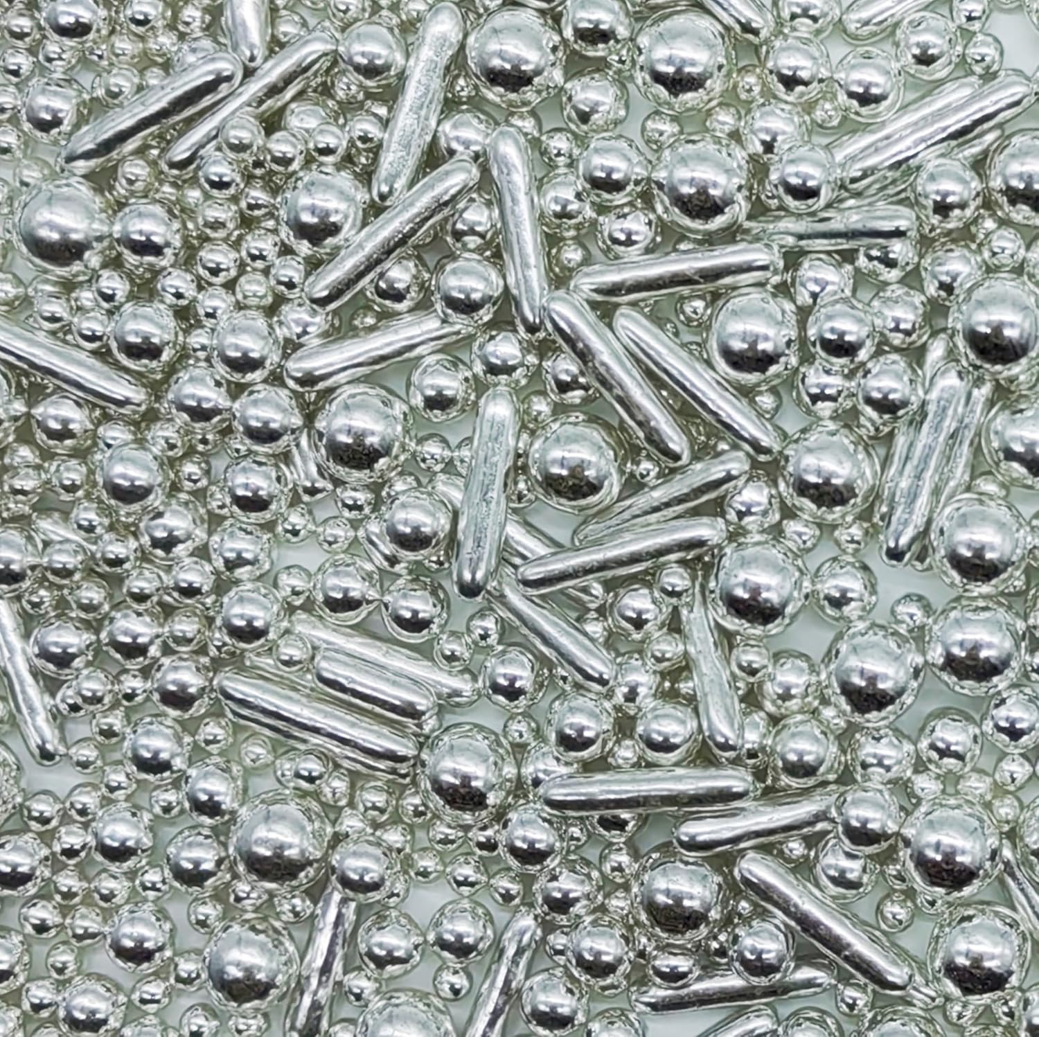 Silver Sprinkles Candy Mix Size Edible Pearls Cake Decorations Cupcake Toppers Cookie Decorating Perfect for Wedding Party Valentine Halloween Christmas Supplies 4.58OZ