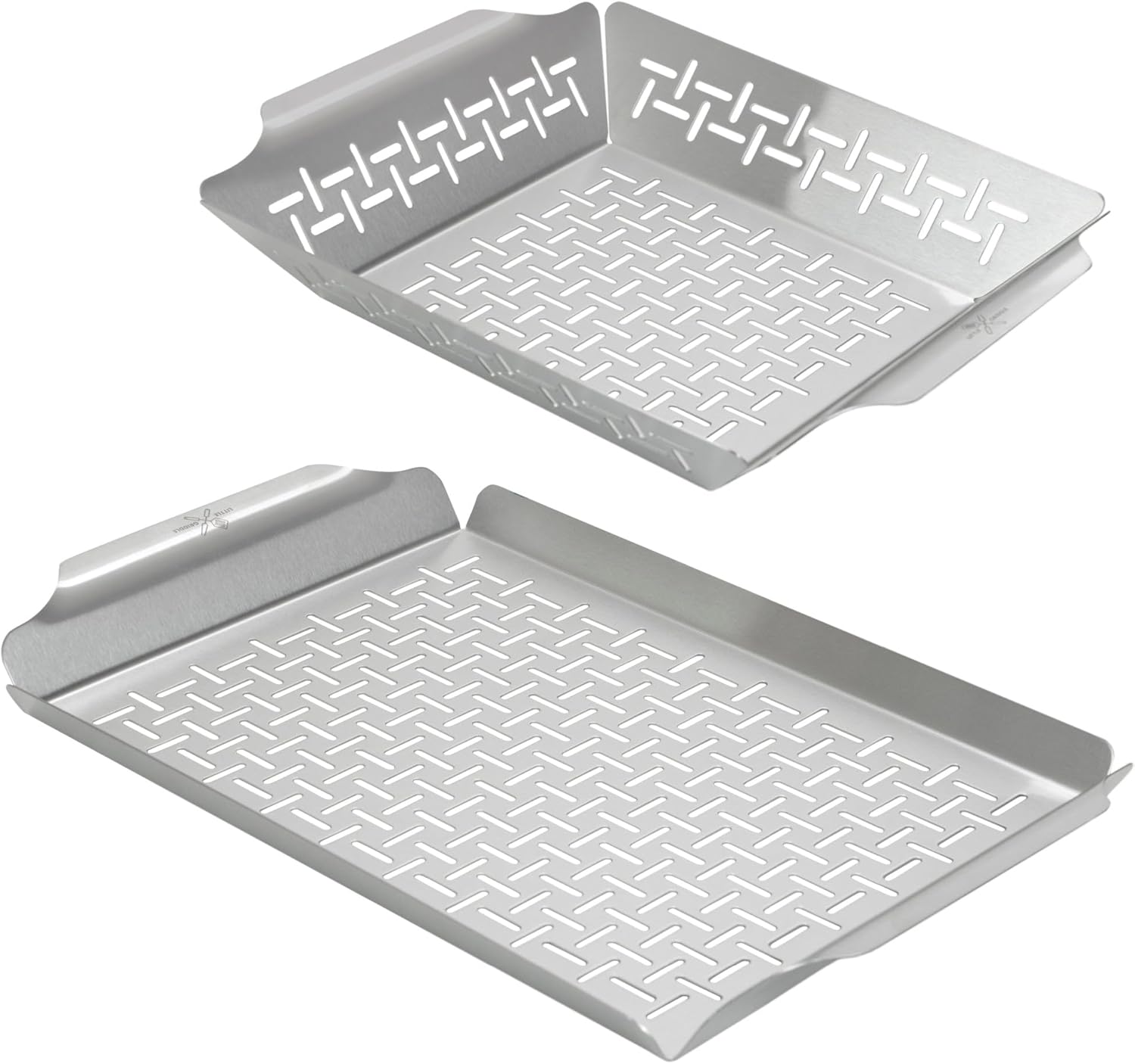 LITTLE GRIDDLE GT-525 Grill Pan and Grill Basket Set, High Sidewalls with Built-in Handles, Stainless Steel & Vented Design - Silver