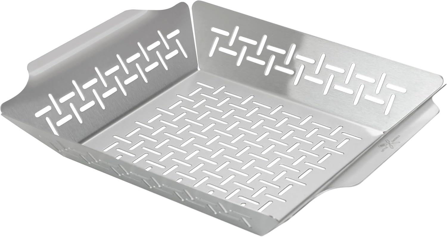 LITTLE GRIDDLE - GT-135 Grill Basket, High sidewalls with built-in handles, Heavy Duty, Stainless Steel Material and Vented Design, Durable and Easy to Clean - Silver