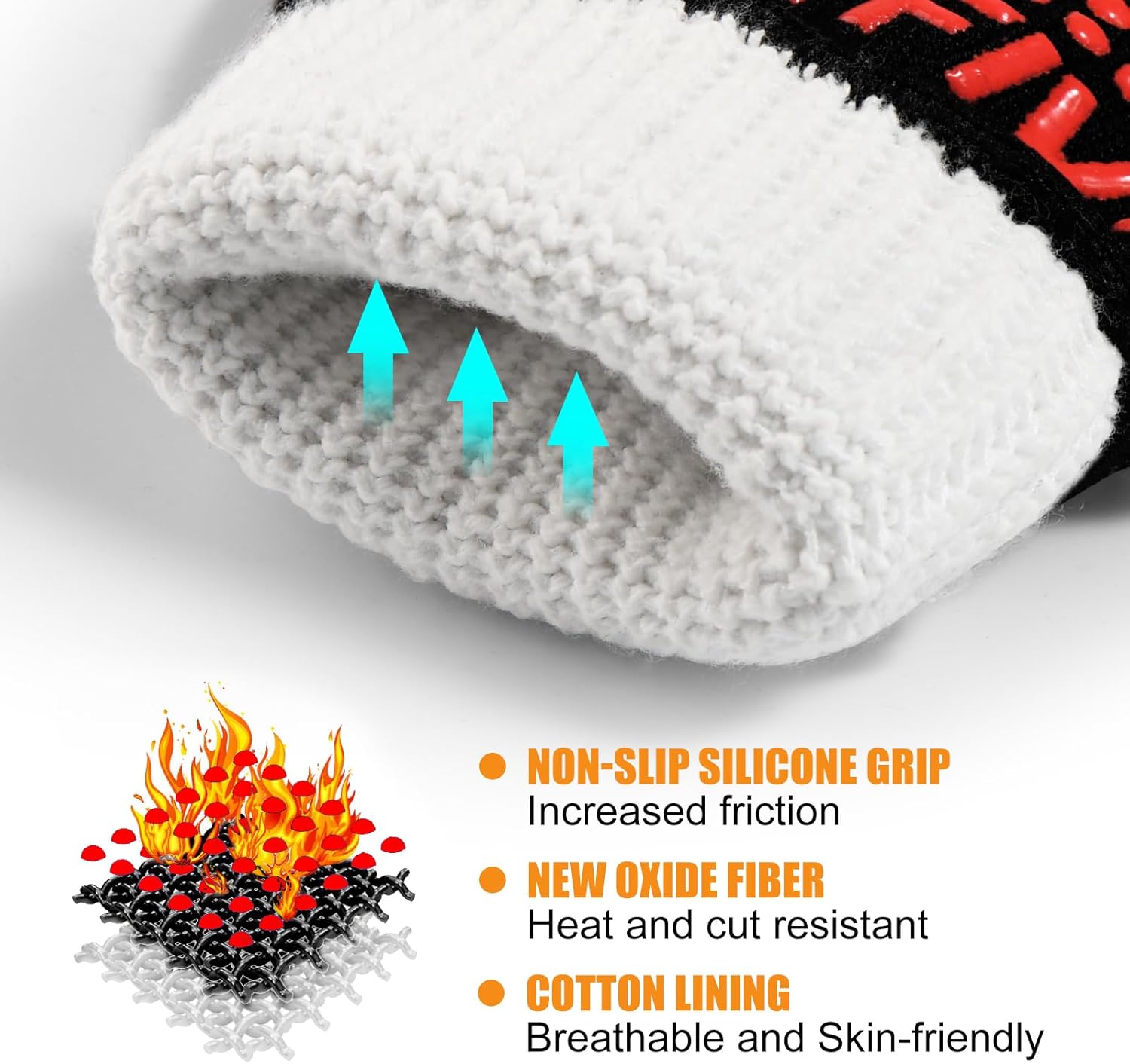 - Anti-Slip Design:To ensure safety and convenience during use, our grilling gloves are covered with a layer of specially designed anti-slip silicone patterns. Not only do these patterns enhance the aesthetic of the gloves, but they also provide exceptional grip strength.