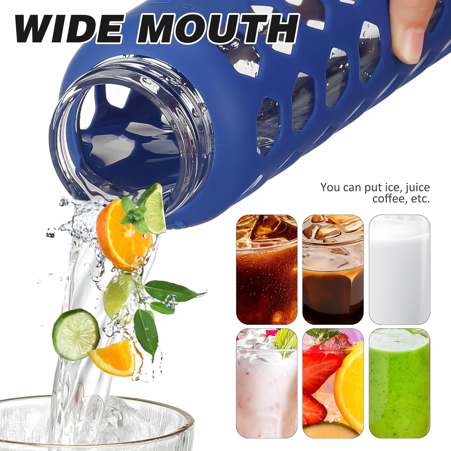 - THE PERFECT DESIGN:Reusable water tumblers are made of more harder and sturdy borosilicate glass and wrapped in a silicone sleeve for a good grip.Especially like that the bamboo lid has a silicone bottom that doesn't contact the liquid inside.