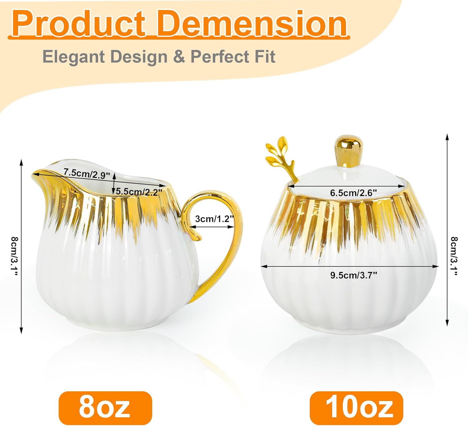 - 【Elegant Design】Presenting our exquisite European-style Sugar and Creamer Set, adorned with delicate gold trim for a touch of luxury. Elevate your table setting with this graceful ensemble, a perfect blend of functionality and timeless beauty.