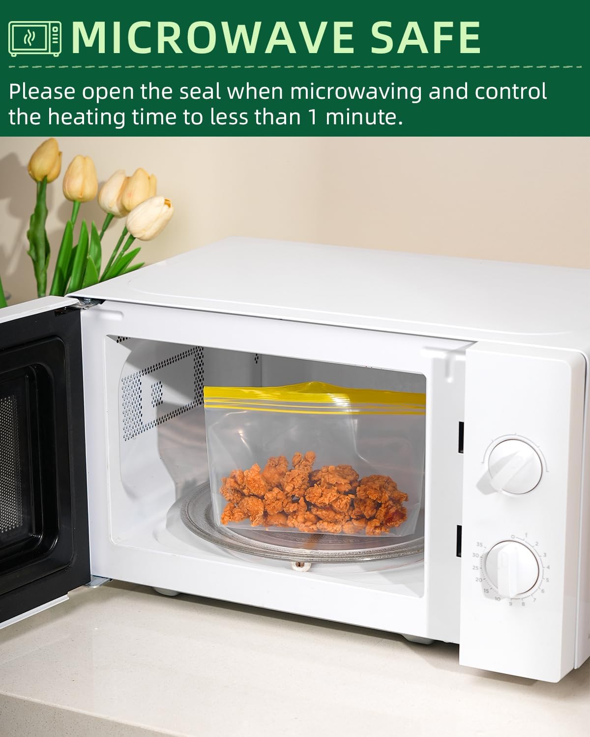 - FREEZER & DISHWASHER SAFE, MICROWAVE FRIENDLY: Thanks to innovative upgrades to materials , the reusable bags are freezer safe, dishwasher safe and microwave friendly. The Reusable bags can lock out freezer burn while keeping food fresh and full of taste, perfect for freezing meat, chicken, fish, fruits, and vegetables. Please allow steam to escape when microwaving and don't microwave for more than 1 minute.