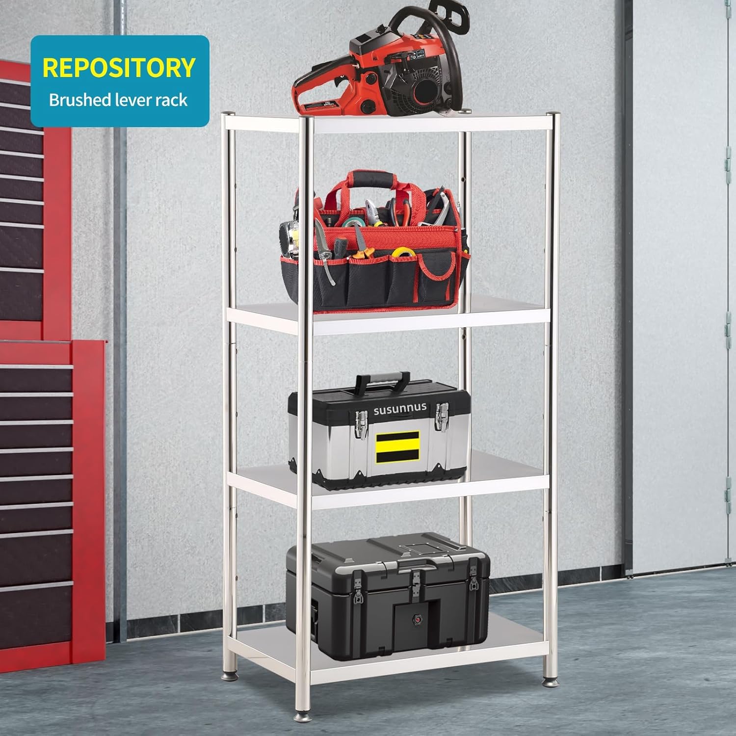 - Heavy Duty Shelving:Open large stainless steel shelving, multi-layer storage space. Kitchen use scene, place a variety of household appliances, tableware; warehouse use scene, place a variety of large industrial supplies