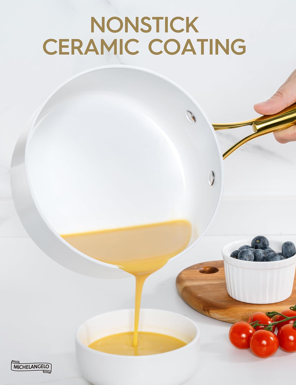 MICHELANGELO Sauce Pan with Lid, Nonstick Ceramic Saucepan Set-1Qt & 2Qt & 3Qt, Small Pots with Ergonomic Handle, Sauce Pans Sets Oven Safe, White