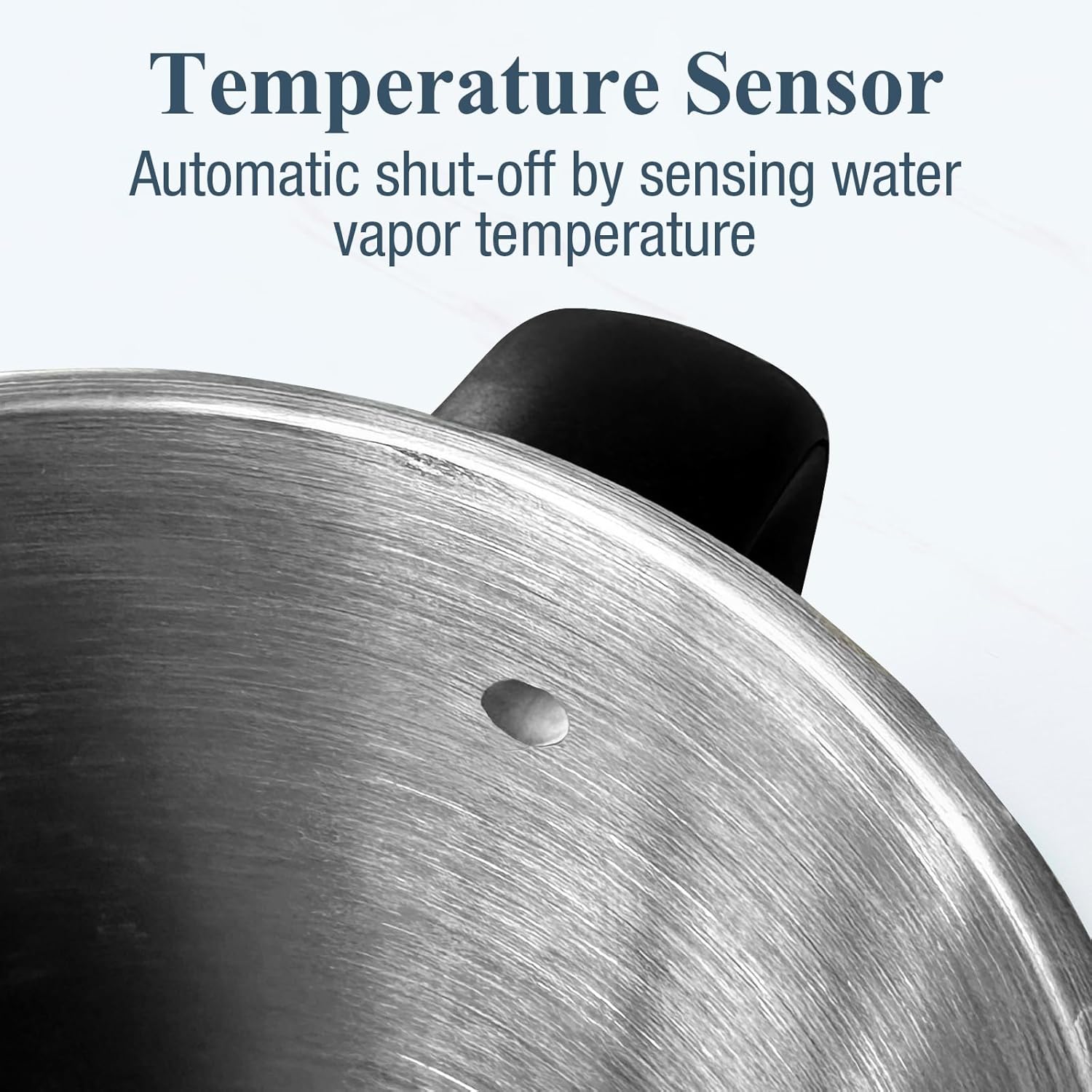 - ใAuto Shut-Off and Boil-Dry ProtectionใThis tea kettle electric featured with boil-dry protection and auto shut-off, will automatically switch off if there isn't enough water inside or when the water reaches the boiling point. After shutdown, it enters standby mode, ready for your next boil, making it a dependable appliance for everyday use.