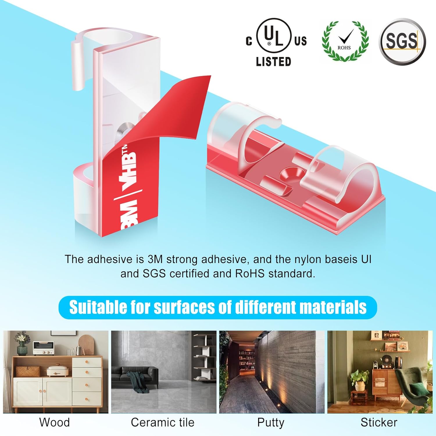 - High quality material:XHF Adhesive Cable Clips are manufactured from 3M Strong Adhesive and PA66 nylon.