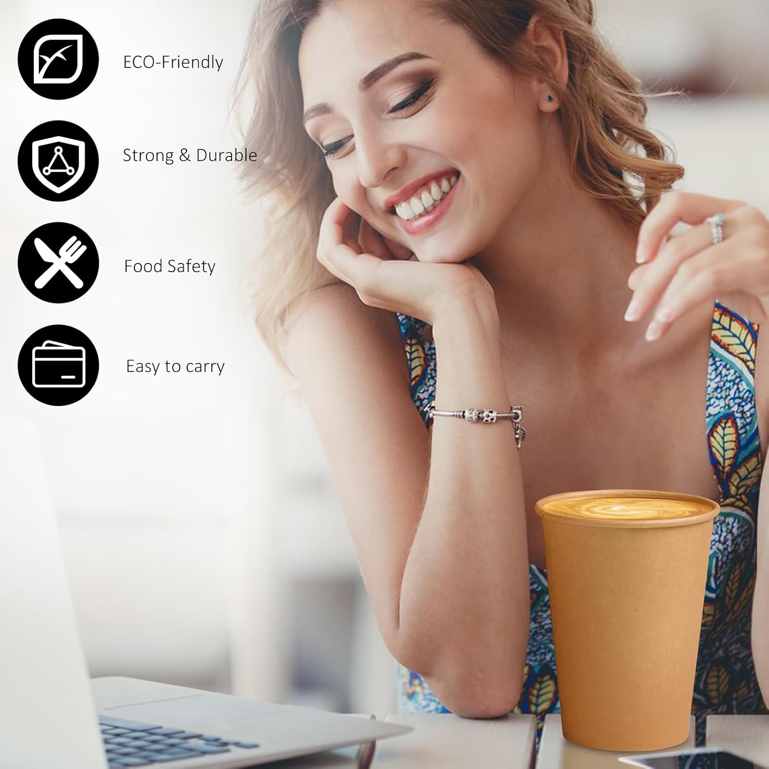 1000 Pack 12 OZ Paper Cups, Brown Kraft Disposable Paper Coffee Cups 12 oz, Unbleached Paper Cups for Hot/Cold Beverage Party, Picnic, Travel, and Events.