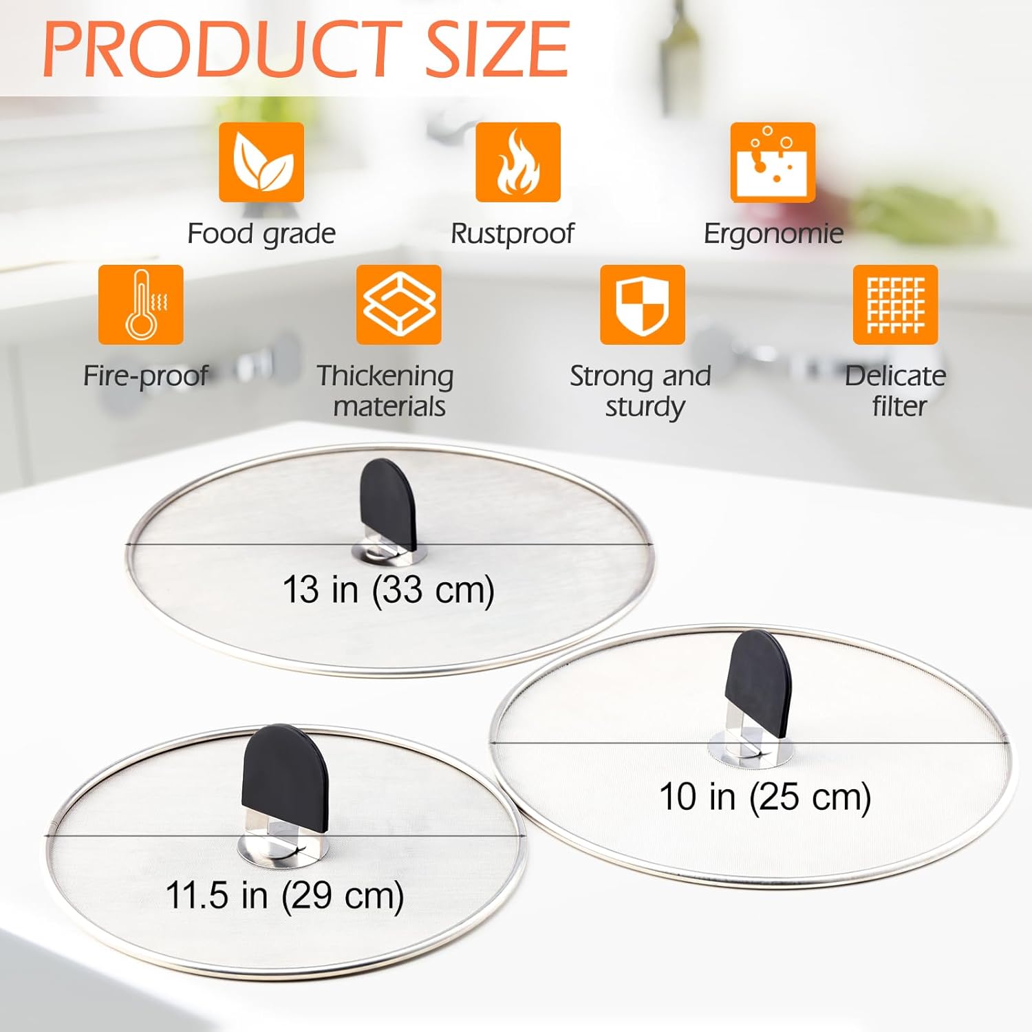 - [3 different sizes] - 3 different sizes various of splatter guards for frying includes 10, 11.5, 13 inch ( 25, 29, 33 cm) available to fits any size frying skillet, bacon pot or stove, ensuring maximum cover and providing versatile splatter protection for your cooking needs