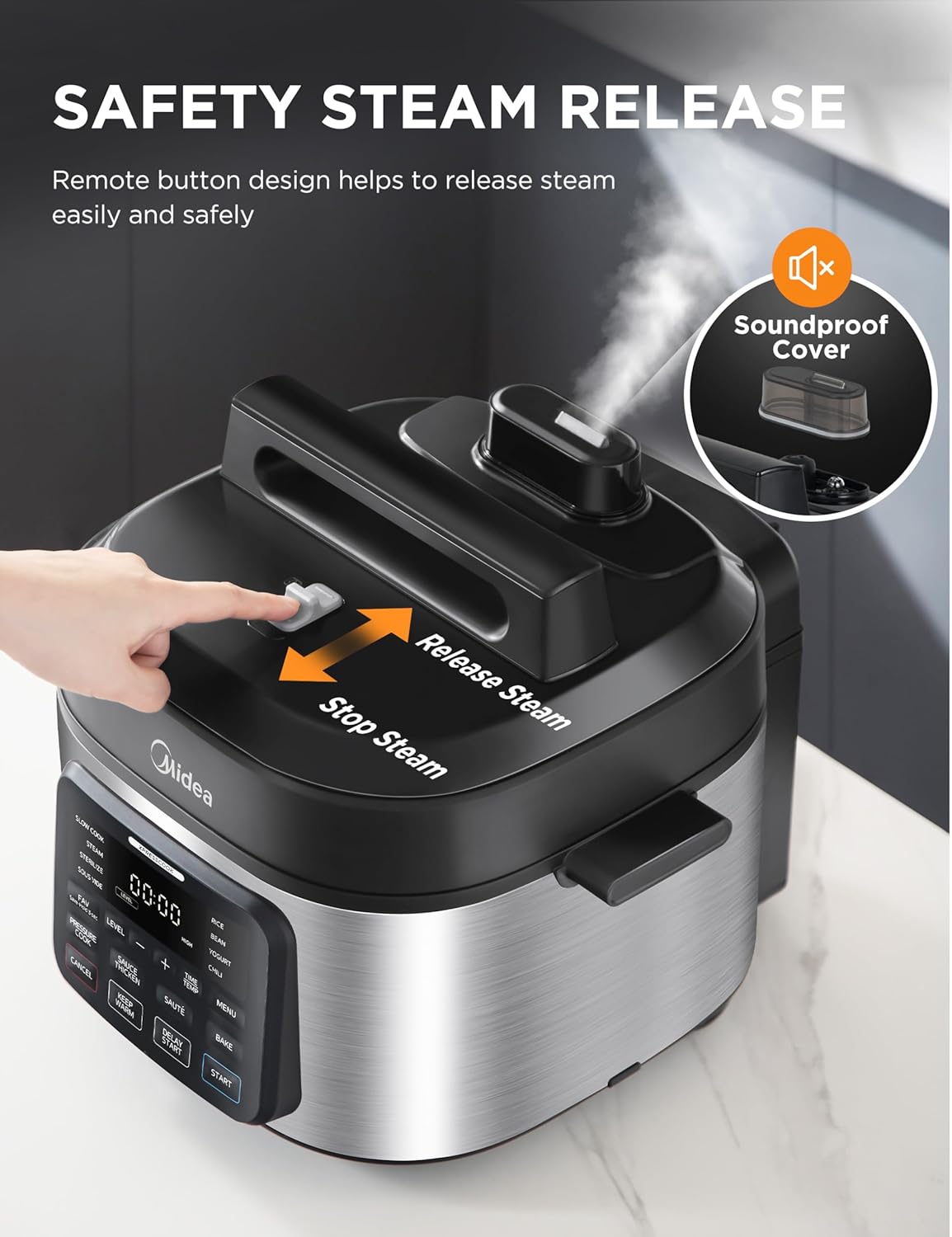 - SAFTY AND QUIET STEAM RELEASE: Button design helps to release steam easily and safely. A specially designed cover reduces the noise when steam is released.