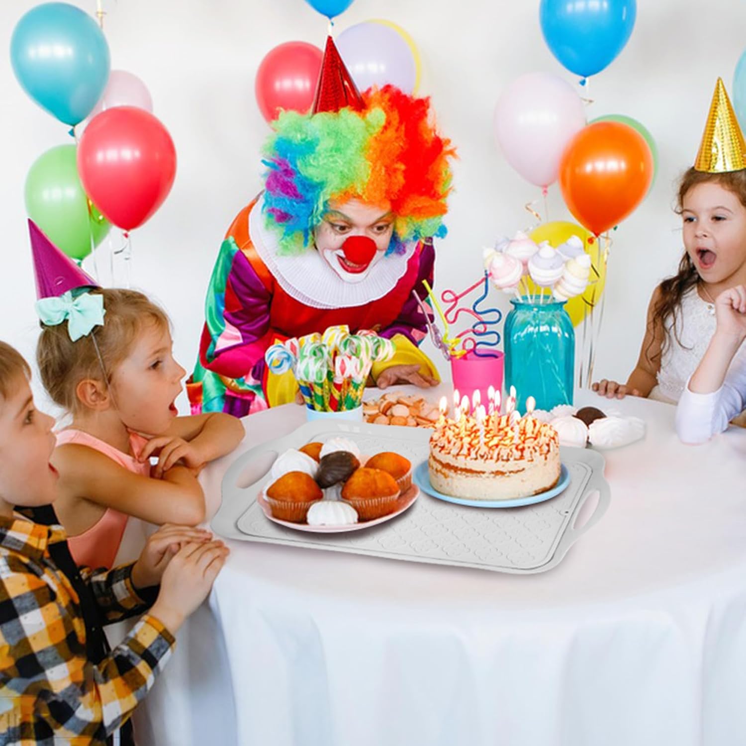 LEHAHA 17.25" x 12" Serving Trays Set of 2 White, Dinner Tray, Light Weight Easy to Clean Sturdy Stackable Melamine Serving Platter with Handle, Fruit, Snacks, and Desserts Trays.Mats Included